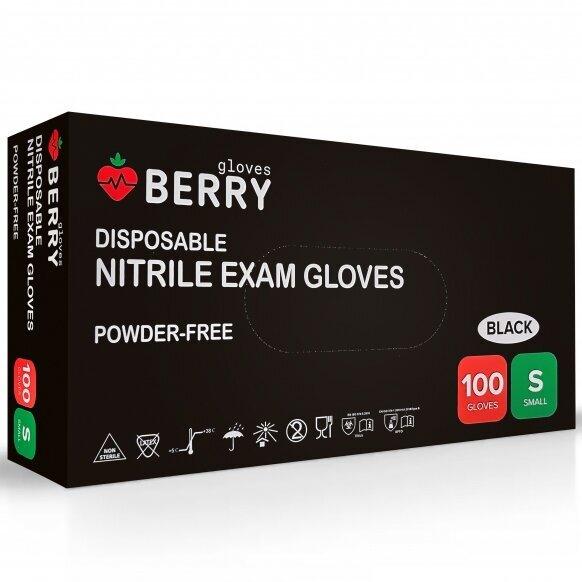 BERRY Gloves Vienkartinės nitrilinės pirštinės Berry Black M, juodos