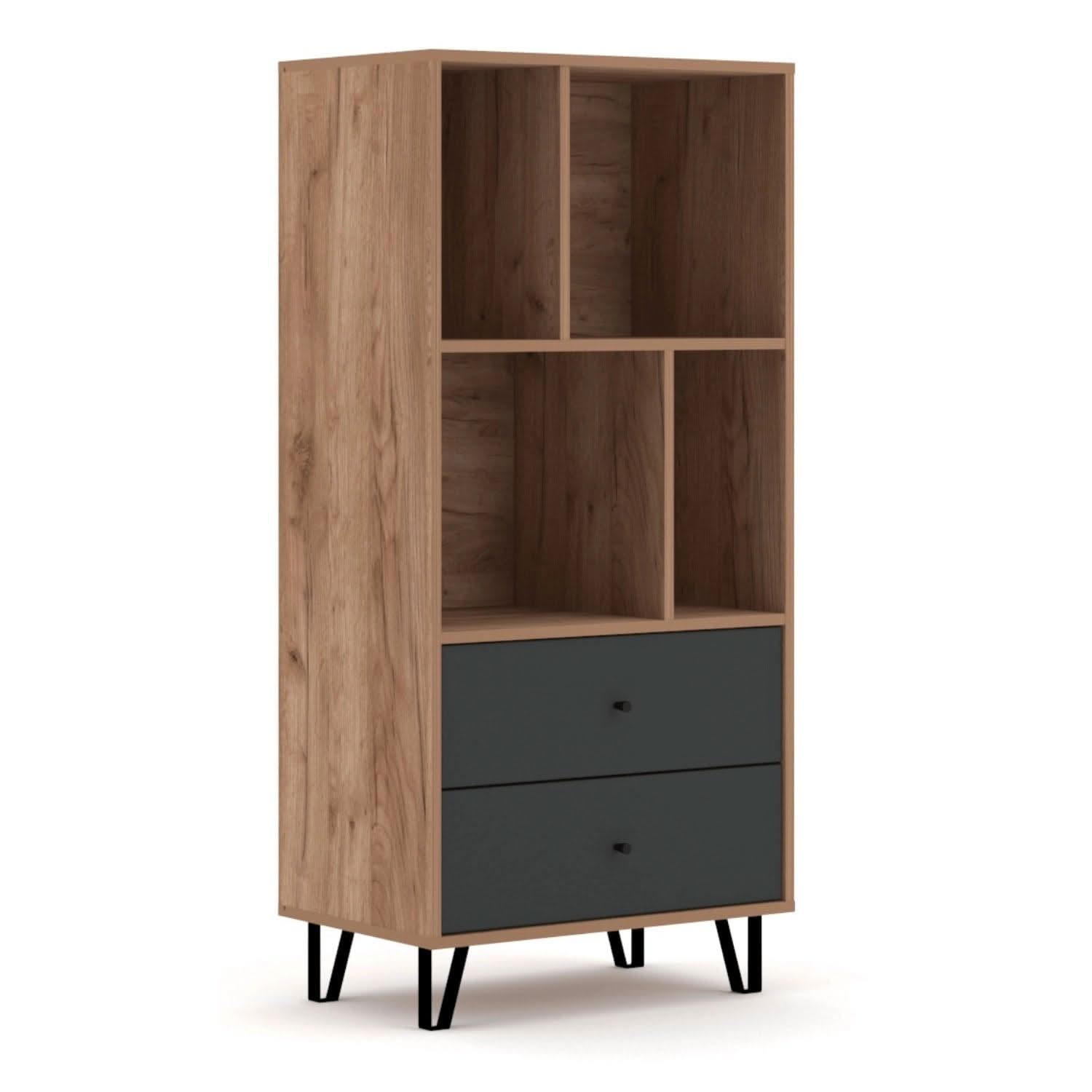 • Unikali spalvų kombinacija: tabako ąžuolas su grafito spalvos stalčiais;