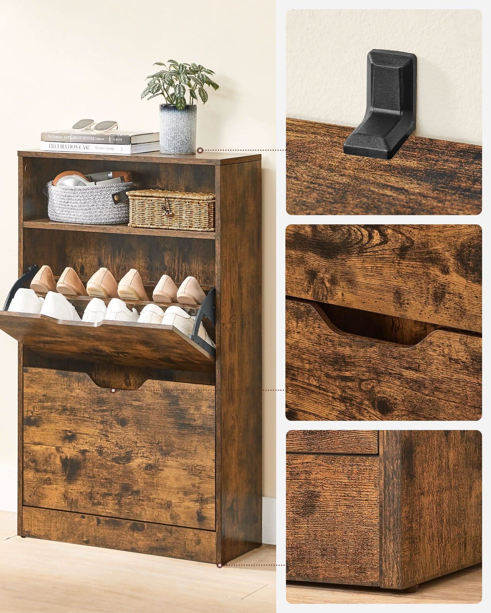 Spinta turi 2 atidaromų durų skyrelius su iš viso 4 giliomis batų lentynomis, kuriose telpa iki 12 batų porų, ir 2 lentynas, ant kurių galime sudėti savo gražiai įrėmintas nuotraukas, trofėjus ar dekoratyvines figūrėles ir vazonines gėles.