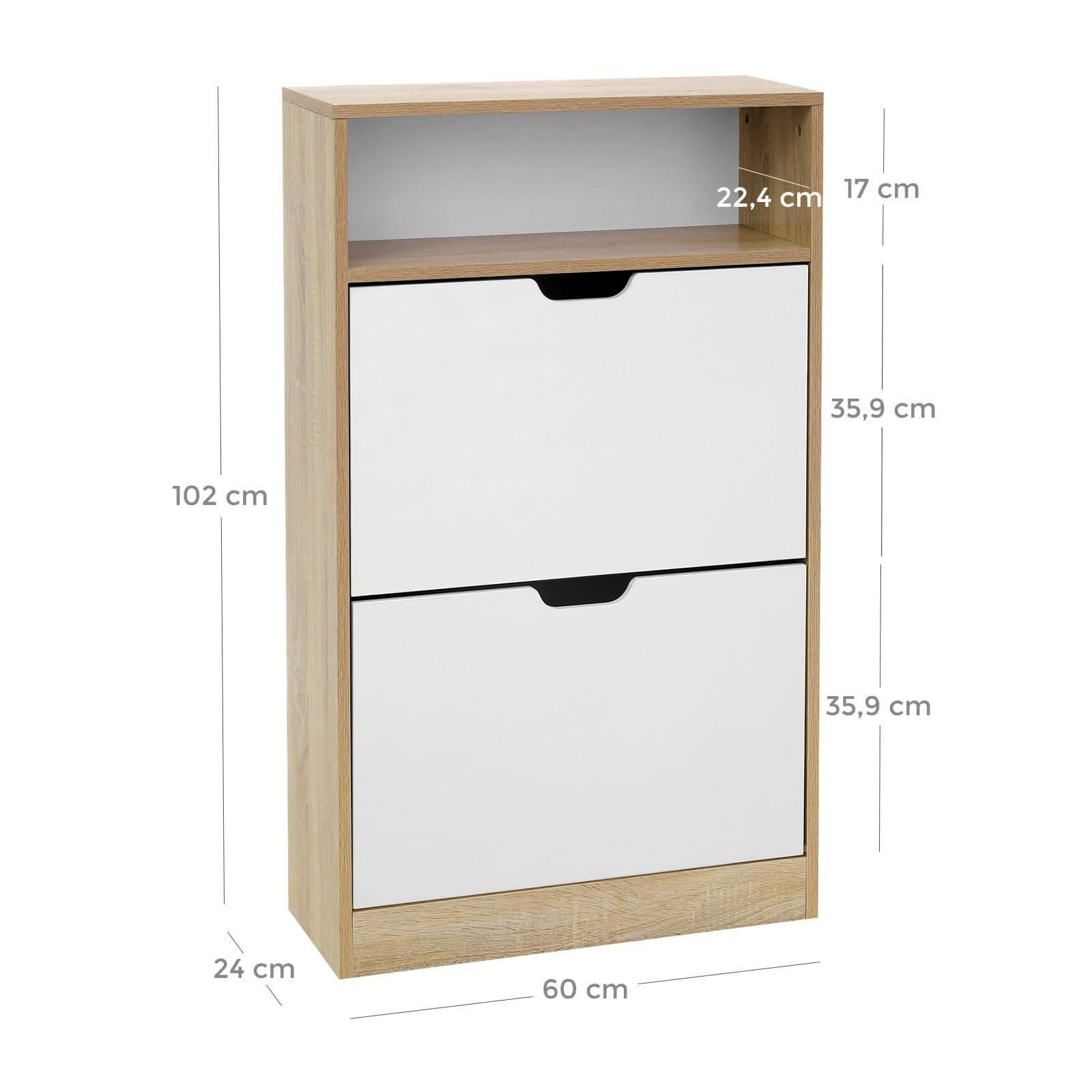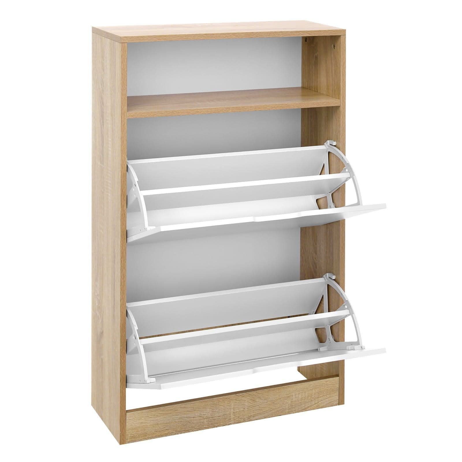 Spintelė turi 2 atidaromų durų skyrelius su iš viso 4 giliomis batų lentynomis, kuriose telpa iki 12 batų porų, ir 2 lentynas, ant kurių galime sudėti savo gražiai įrėmintas nuotraukas, trofėjus ar dekoratyvines figūrėles ir vazonines gėles.