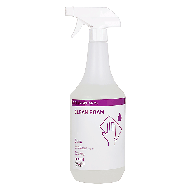 CLEAN FOAM yra paruoštos naudoti dezinfekavimo ir valymo putos, skirtos neinvaziniams medicinos prietaisams ir kitiems alkoholiui jautriems paviršiams. CLEAN FOAM sudėtyje nėra alkoholių, aldehidų ir PHMB, todėl ją galima naudoti visiems vandeniui atspariems paviršiams. Produktas yra putų pavidalo, todėl jį naudoti labai patogu ir ekonomiška.