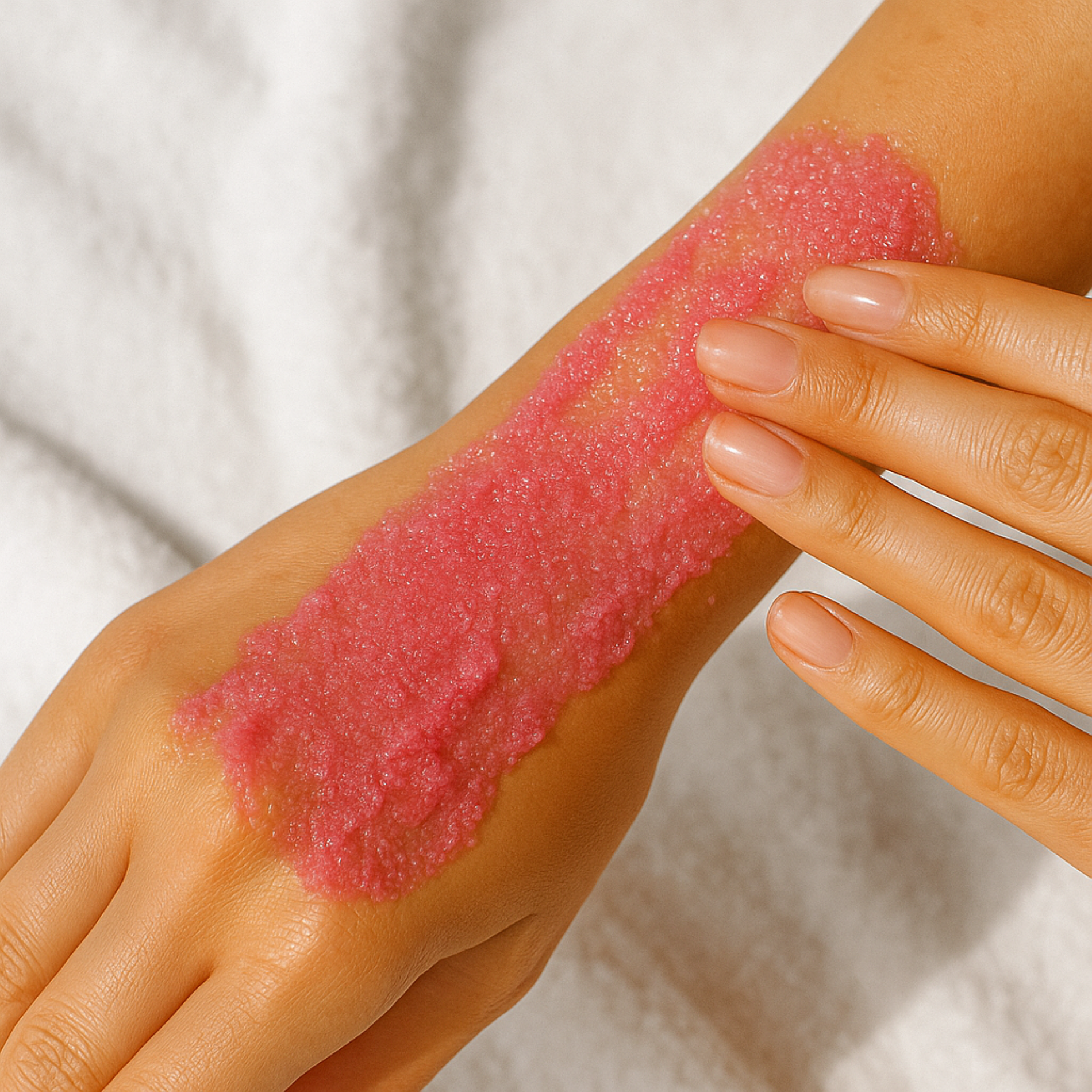 • Švelniai šveičia – smulkūs cukraus kristalai efektyviai, bet švelniai nušalina negyvą odos sluoksnį.