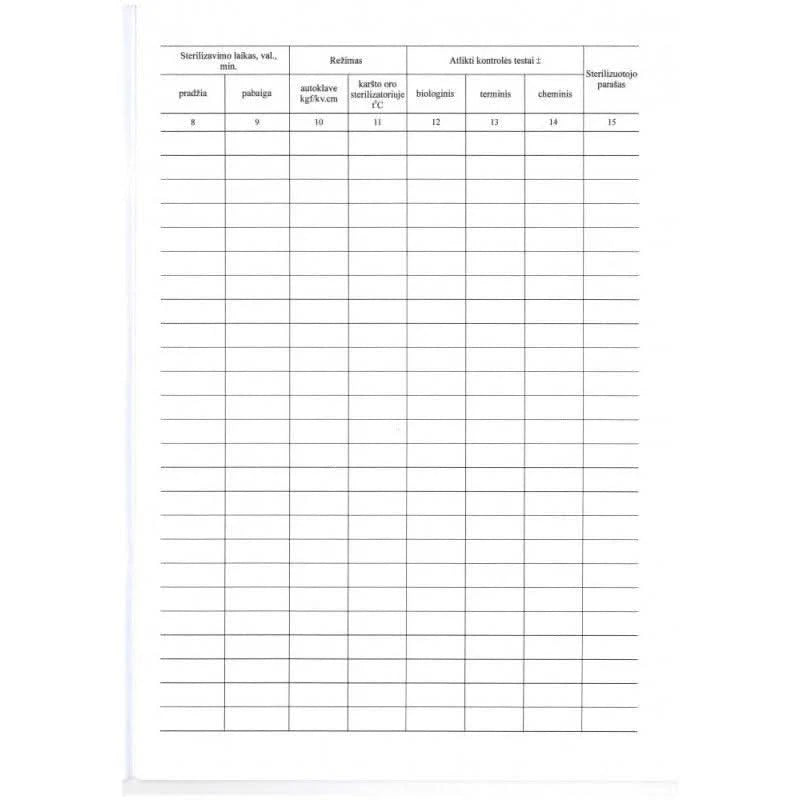 Privalomas manikiūro bei pedikiūro paslaugų tiekimo vietose. Tinka kirpykloms, grožio kabinetams ir salonams. Baigtą pildyti darbo su sterilizatoriais žurnalą privaloma saugoti 5 metus. Forma patvirtinta Lietuvos Respublikos sveikatos apsaugos ministerijos.
