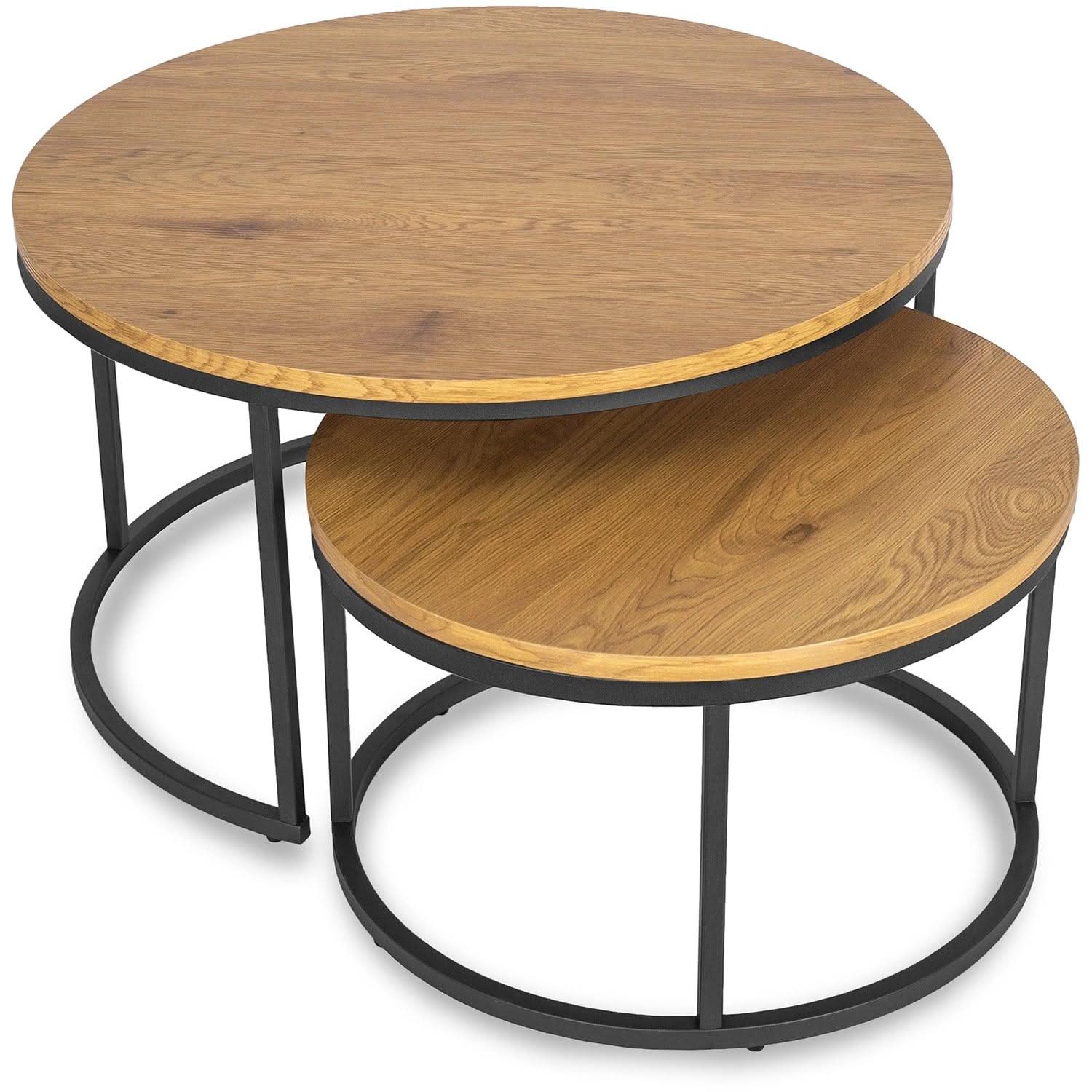 Stilingas kavos staliukų rinkinys DELIA MAX – auksinis ąžuolas ir juoda elegancija