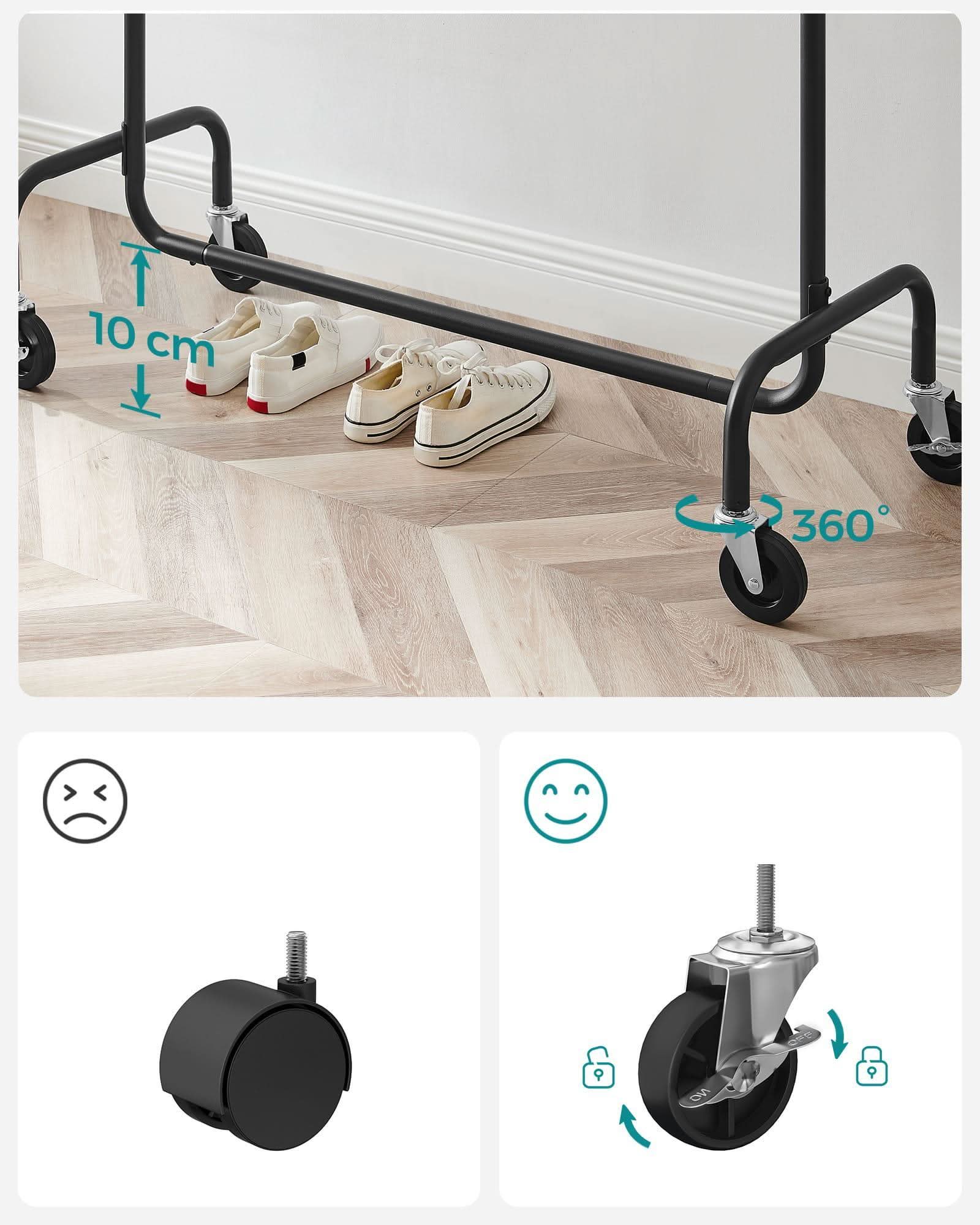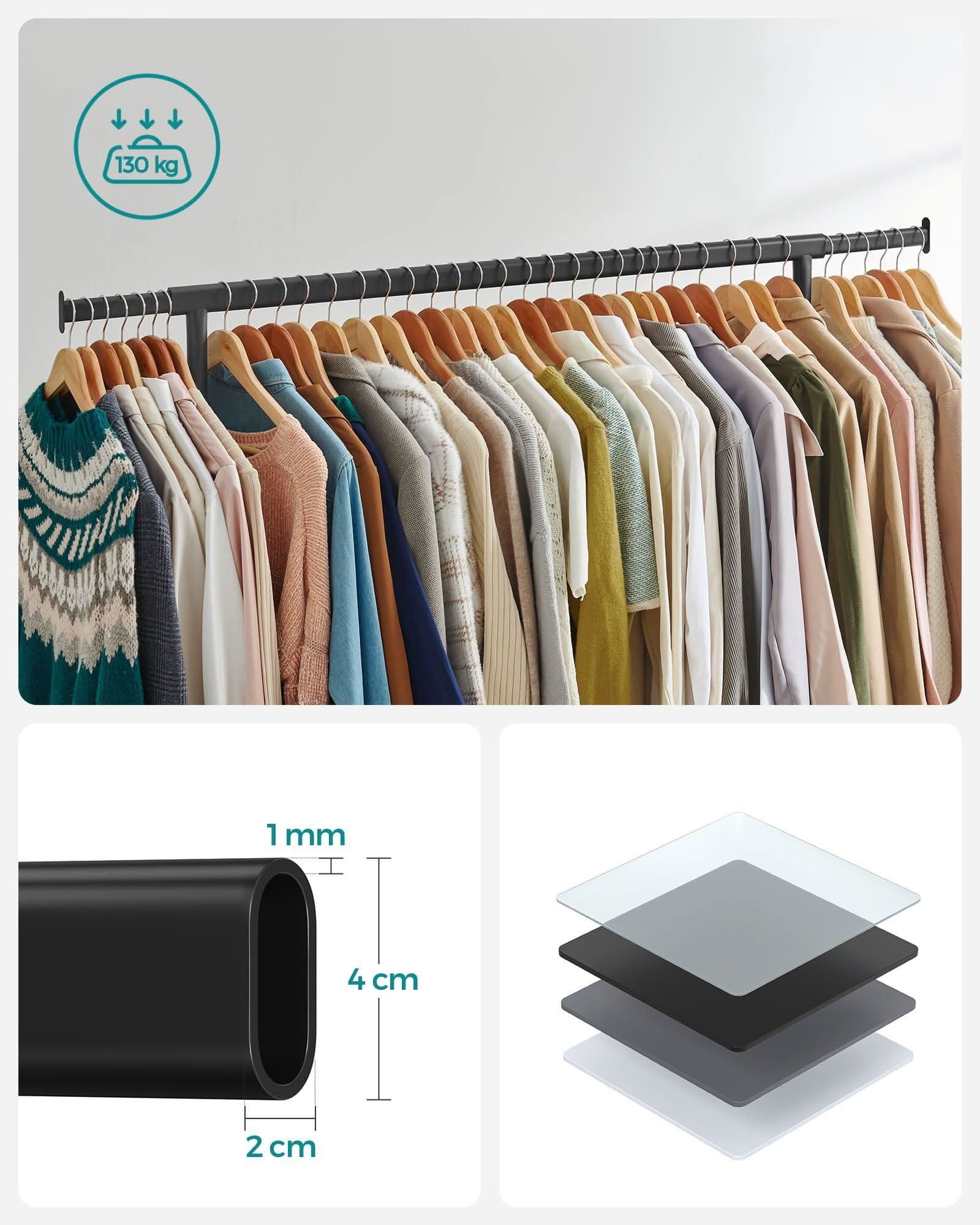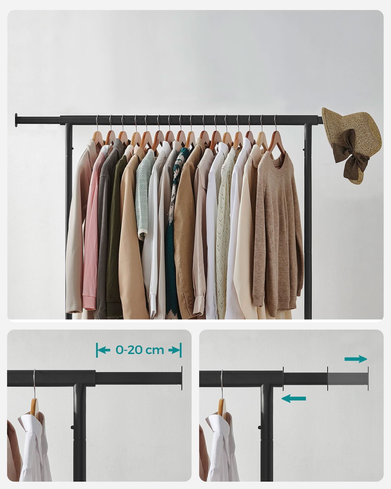 Galimybė pailginti juostą 20 cm iš abiejų pusių suteikia papildomos vietos drabužiams pakabinti.