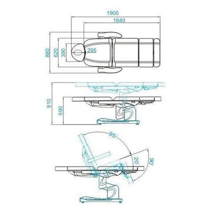 Elektrinė kėdė, ideali grožio salonams ir SPA centrams. Dėl nepriklausomų variklių nuotolinio valdymo pulteliu galima reguliuoti kėdę 4 plokštumose, todėl galima atlikti veido ir kūno procedūras. Nuotolinio valdymo pulteliu galime reguliuoti kėdės aukštį, atlošo ir kojų atramų pasvirimą bei nustatyti sėdynę į lopšio padėtį.