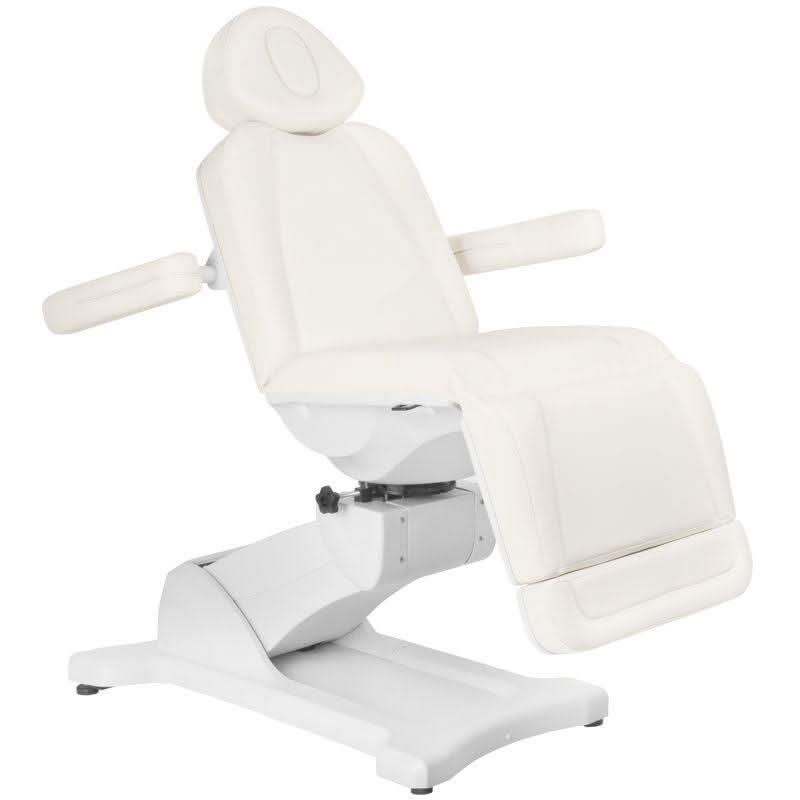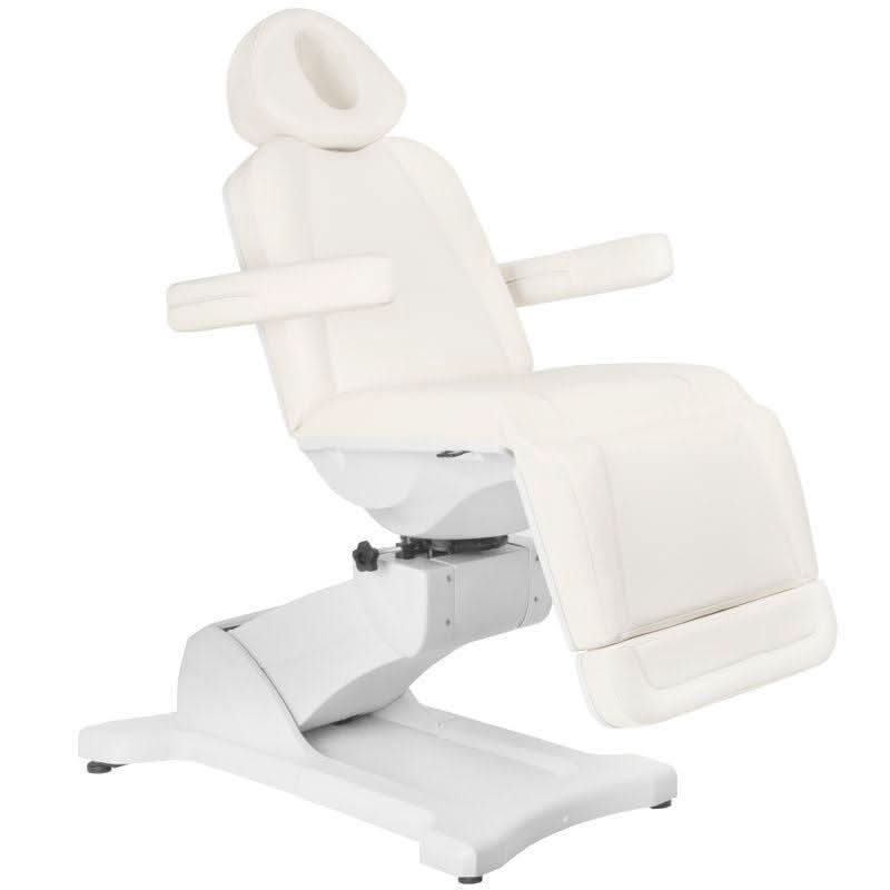 Elektrinis kosmetologininis gultas, idealus grožio salonams ir SPA salonams. Nepriklausomų variklių dėka nuotolinio valdymo pulteliu leidžia reguliuoti gultą 4 plokštumose, suteikiant galimybę atlikti veido ir kūno procedūras. Gultas turi novatorišką sprendimą, leidžiantį sėdynei apsisukti 180 laipsnių kampu aplink savo ašį. Nuotolinio valdymo pulteliu galime reguliuoti aukštį, atlošo ir kojų atramų pasvirimą bei nustatyti sėdynę į lopšio padėtį.