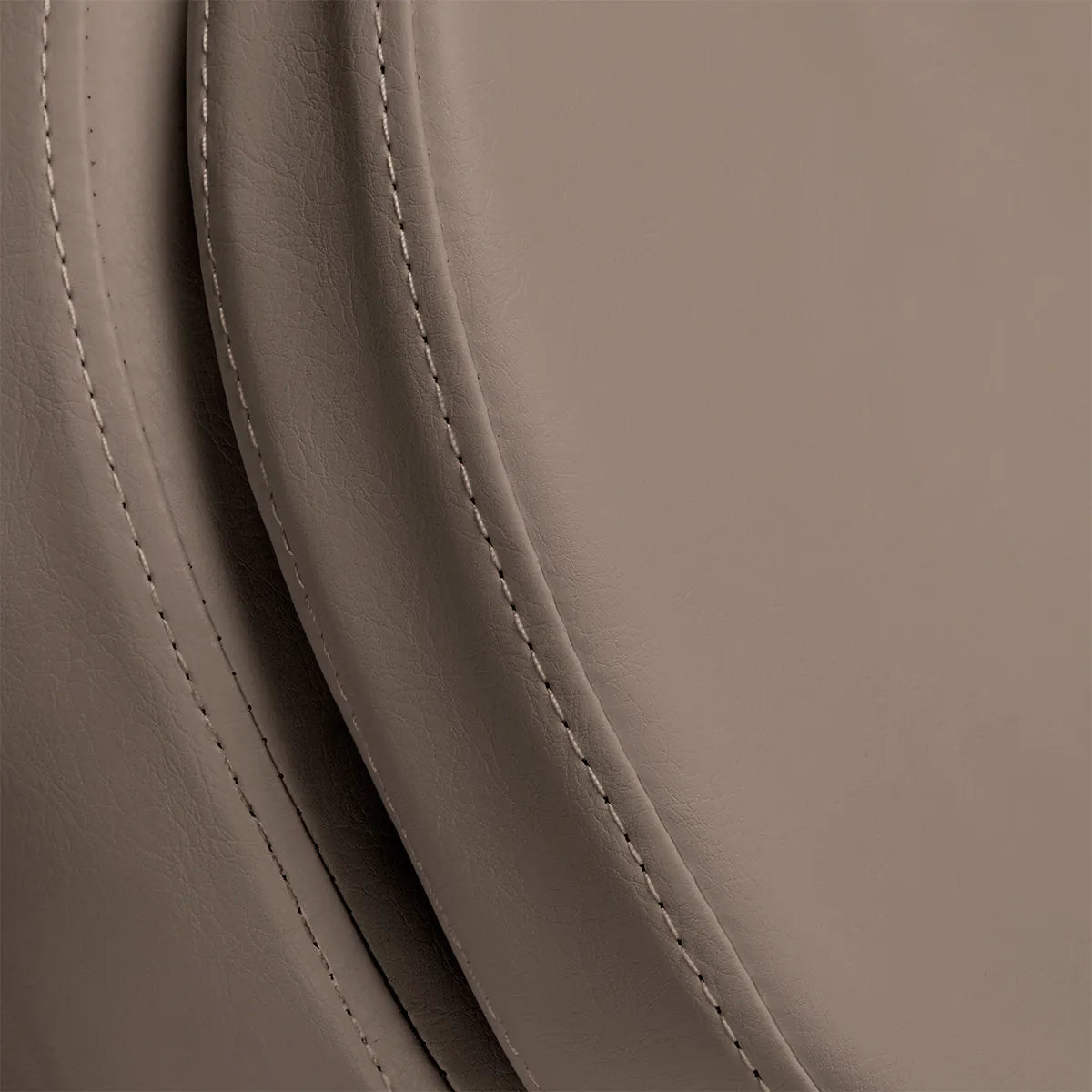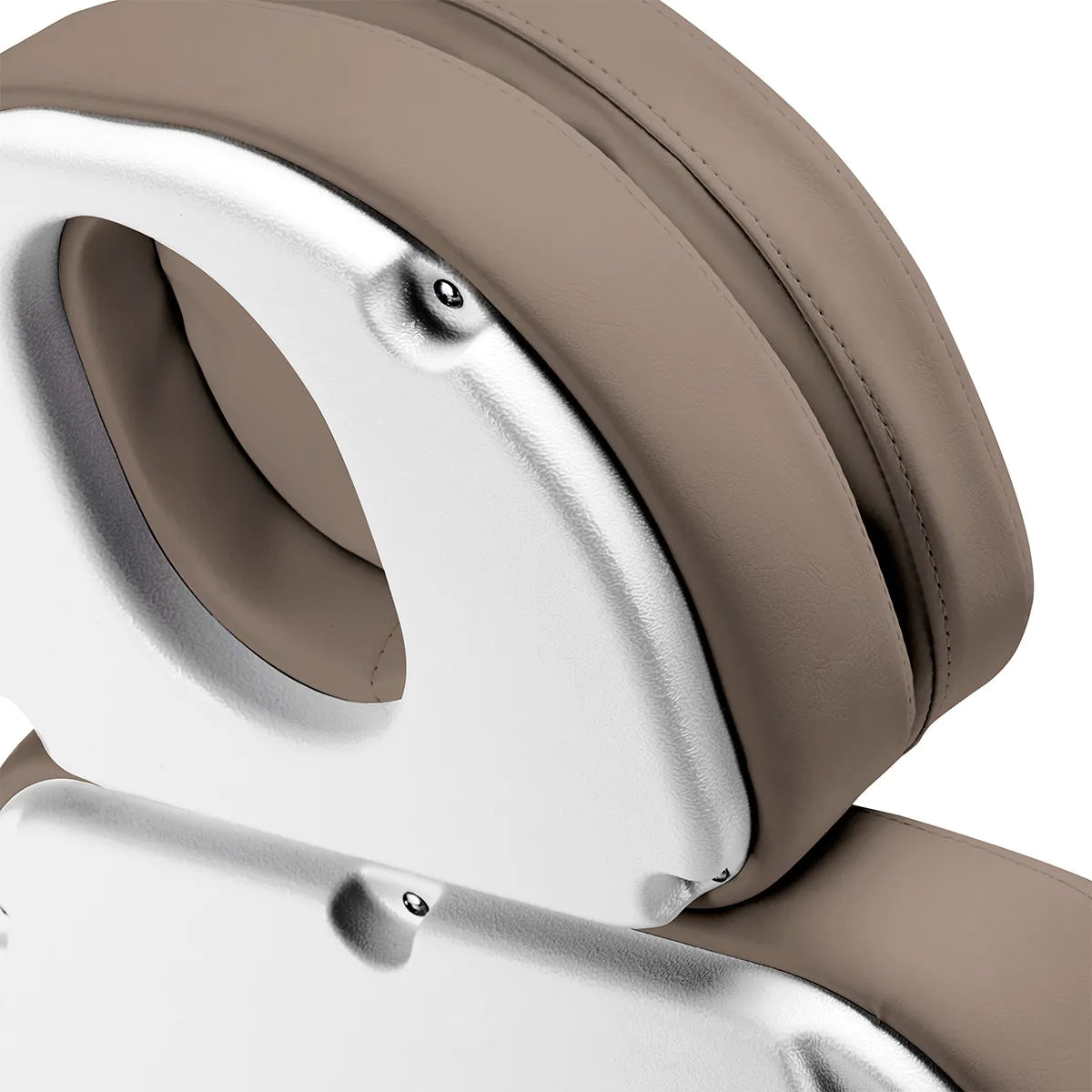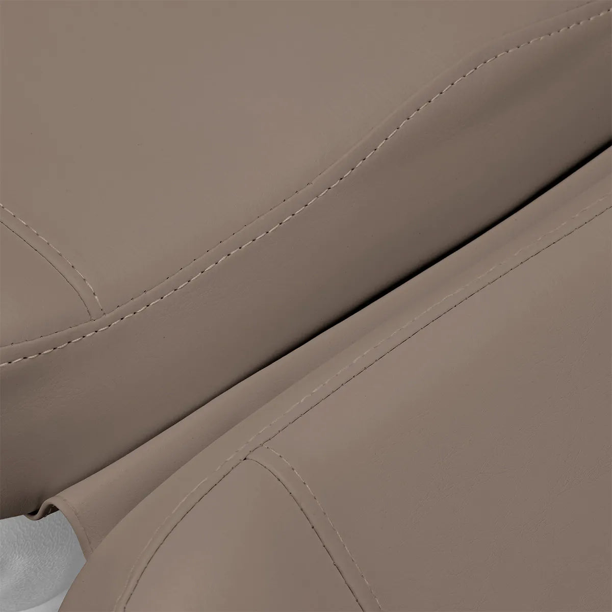 Kėdė yra užpildyta kontūrinės formos putomis ir padengta malonios liesti sintetinės odos rudais atspalviais.  Medžiaga leidžia lengvai valyti įrangą, be to, ji yra atspari drėgmei ir tam tikroms dezinfekavimo priemonėms. Tvirtas pagrindas, pagamintas iš patvarios medžiagos baltos spalvos atspalviais, užtikrina stabilumą procedūrų metu. Tinkamai profiliuoti kraštai suteikia kėdėms stilingą išvaizdą ir daro sėdynę ergonomišką. Minimalistinis, paprastas dizainas ir klasikinės spalvos leidžia ją pritaikyti bet kokiam interjerui.