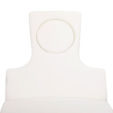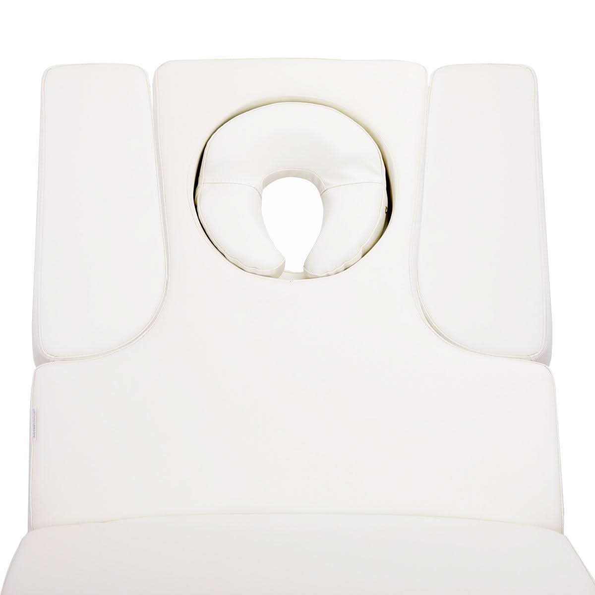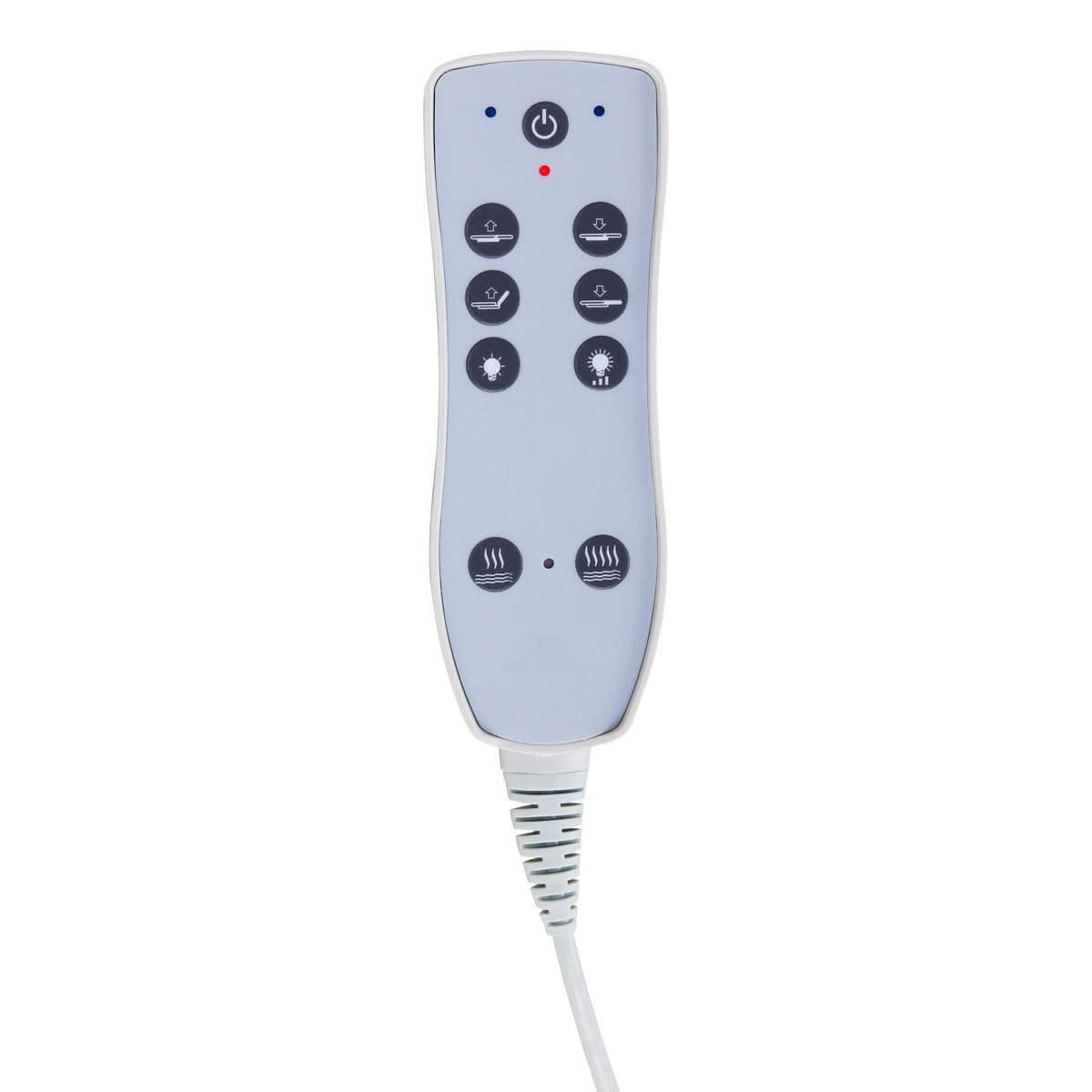 Elektrinis aukščio reguliavimas labai plačiame diapazone – nuo ​​58 iki 85 cm. Atlošas taip pat reguliuojamas nuotolinio valdymo pulteliu, nuo horizontalios iki beveik vertikalios (pakyla iki 80 laipsnių). Ant atlošo yra veido anga su pagalvėle. Galimybė ištiesti arba visiškai išardyti atlošo šonines dalis. Apatinėje dalyje, po atlošu, yra stalčius daiktams susidėti. Platus baldas (76 cm), su storu, šildomu ir labai patogiu čiužiniu. Aptrauktas aukštos kokybės eko oda.