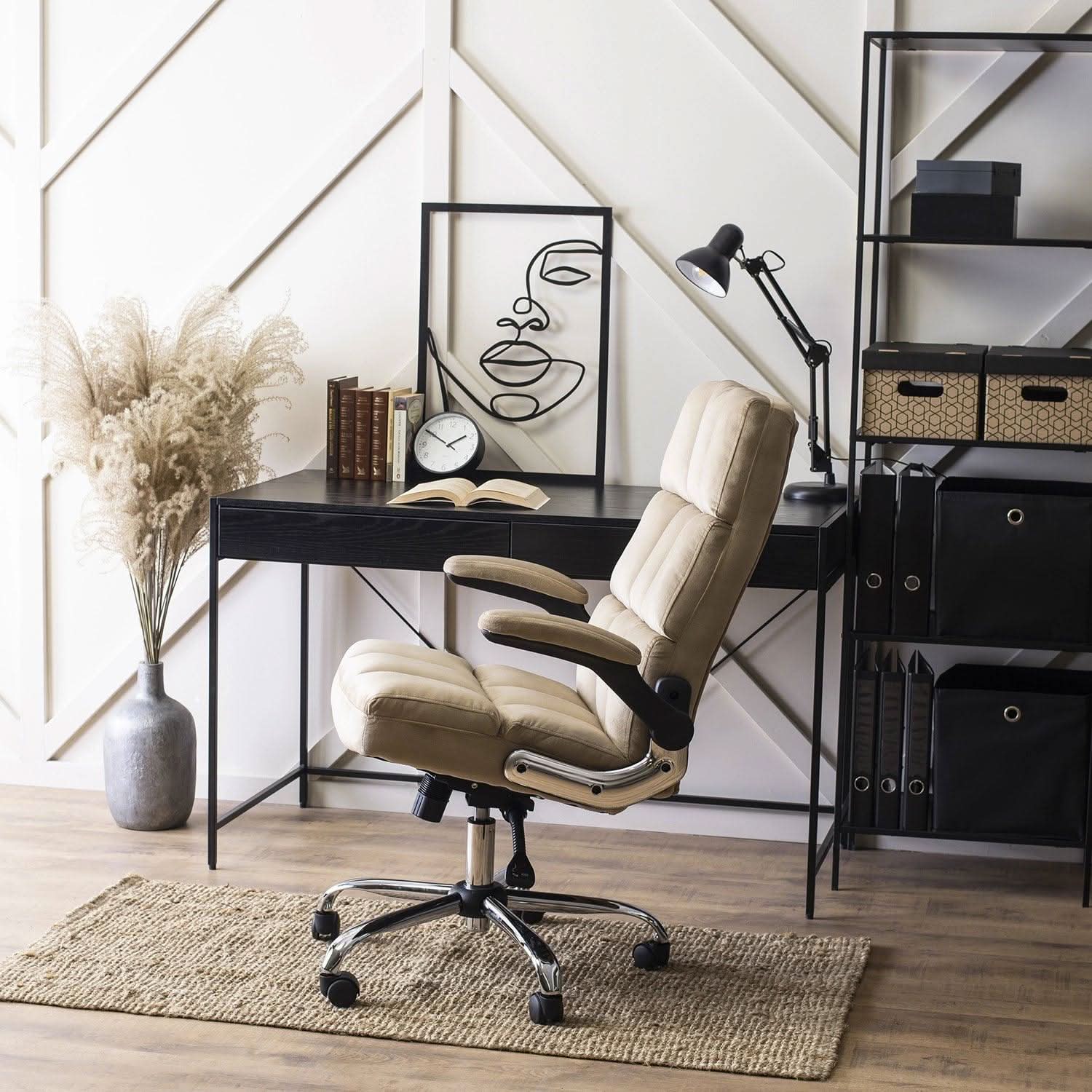 Ergonomiška biuro kėdė LONDON, smėlio spalvos aksomas