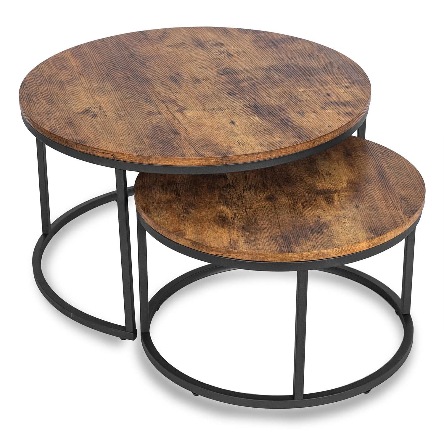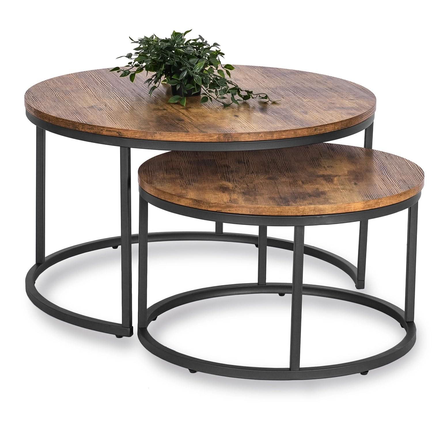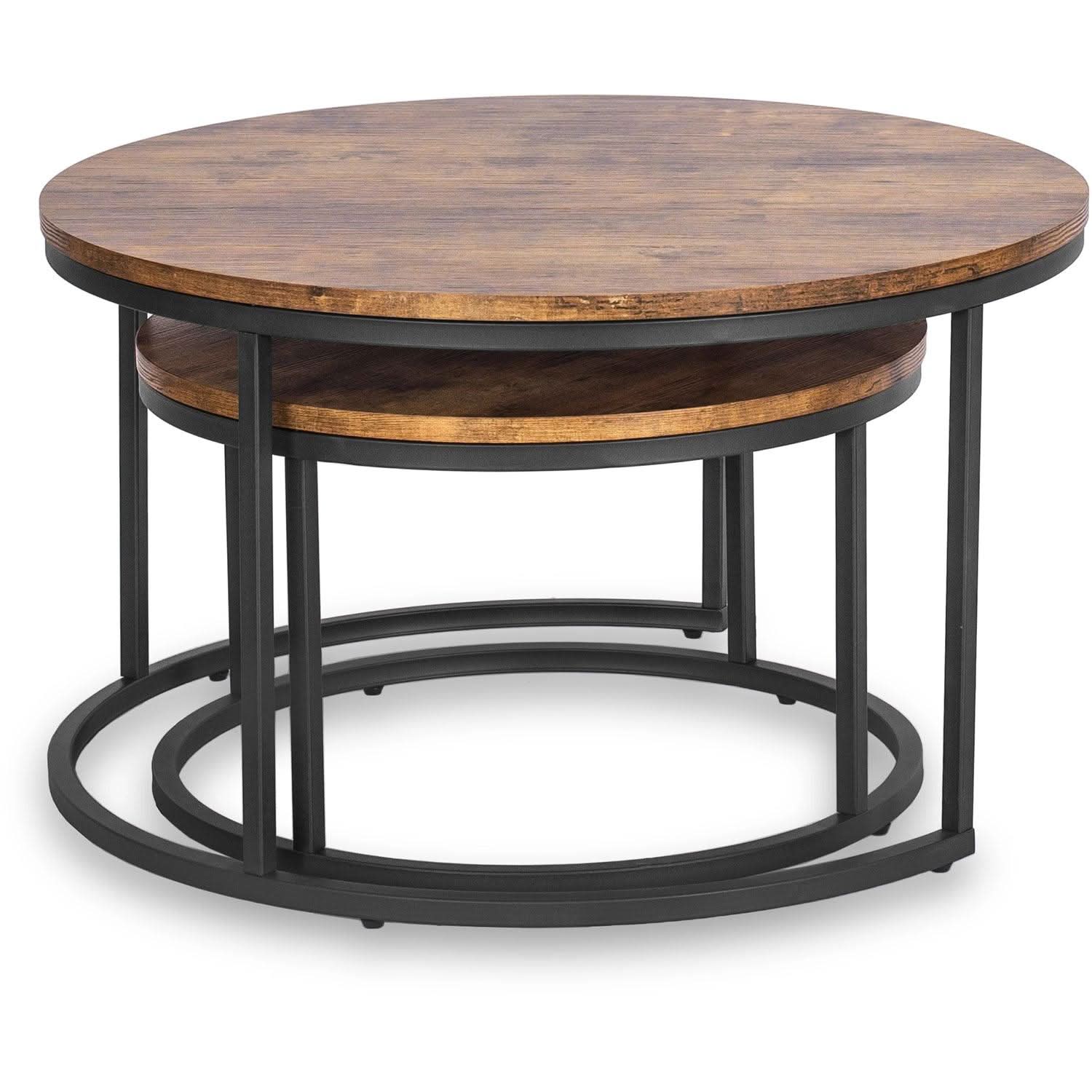 Ąžuolo ir juodos spalvos kavos staliukų rinkinys FIGO MAX – stilius ir funkcionalumas viename