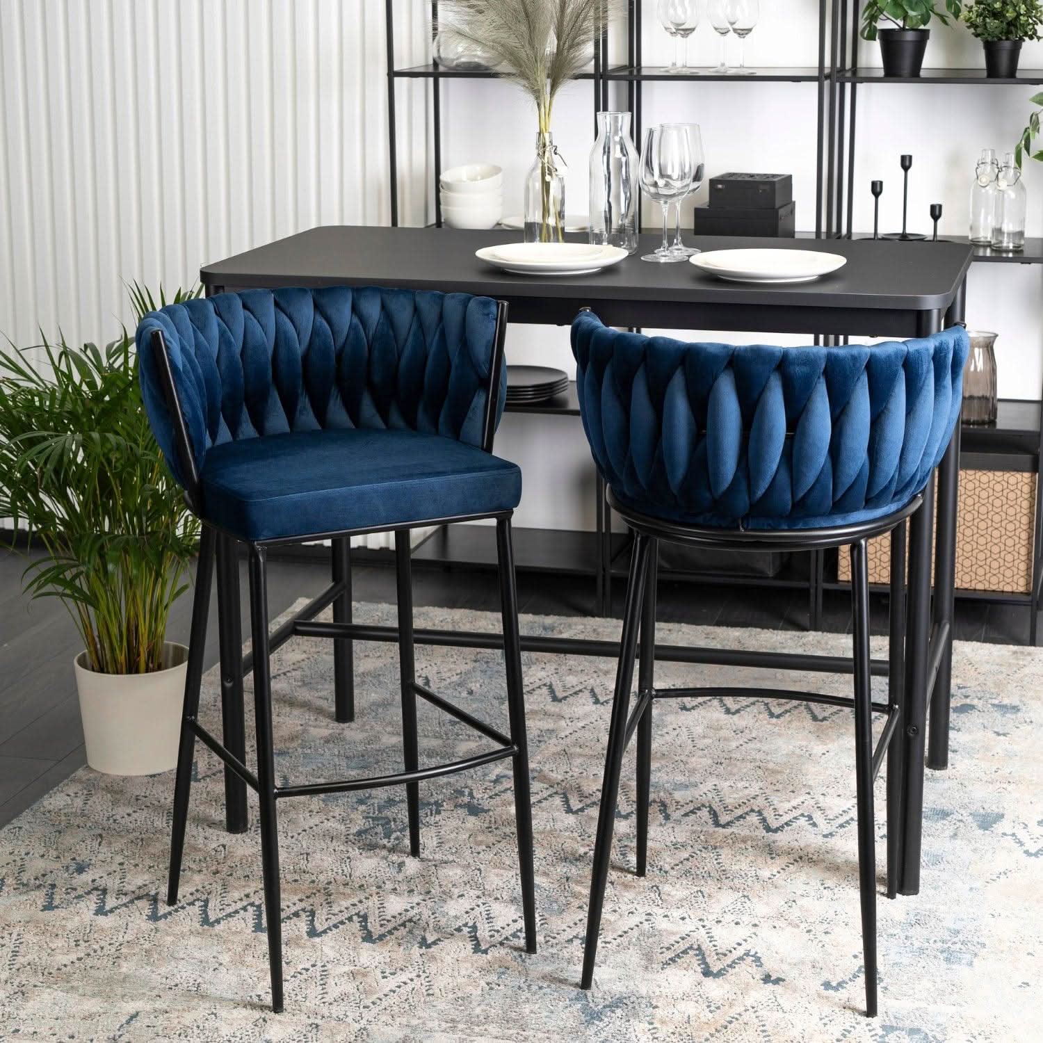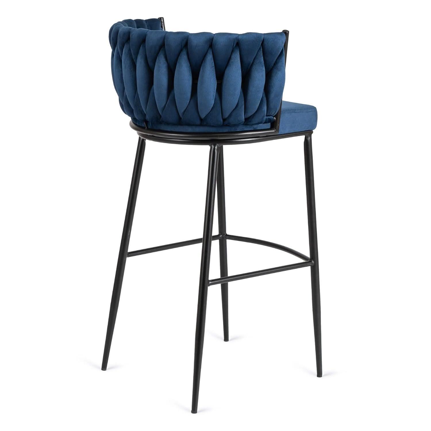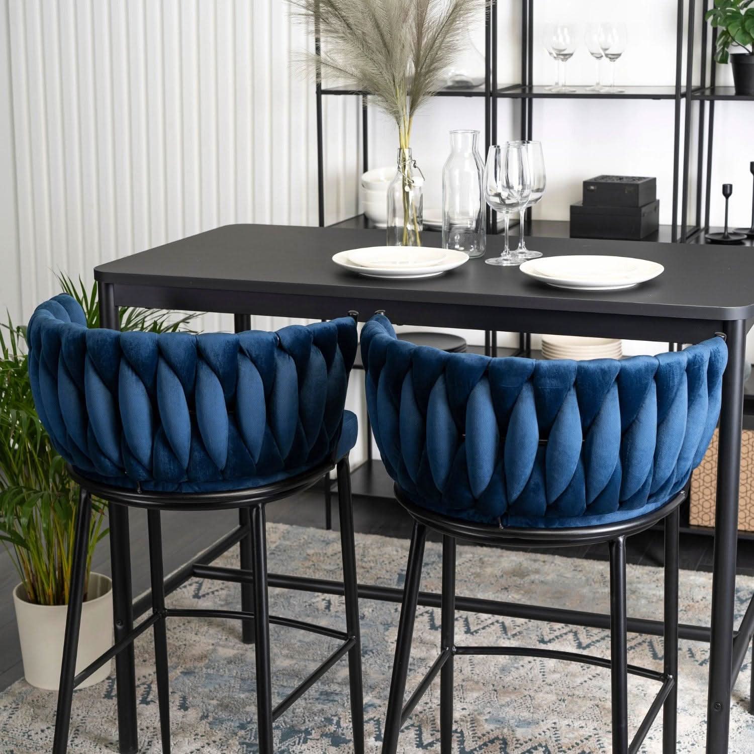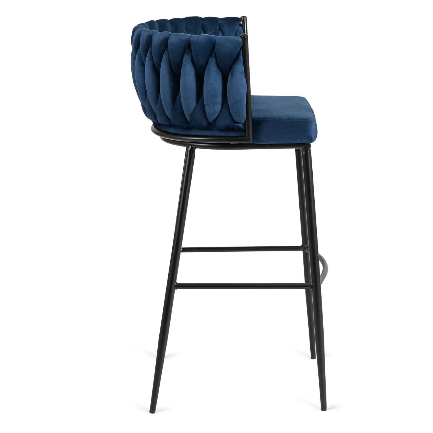 FLORES baro kėdė su austu atlošu – mėlynos spalvos aksomas