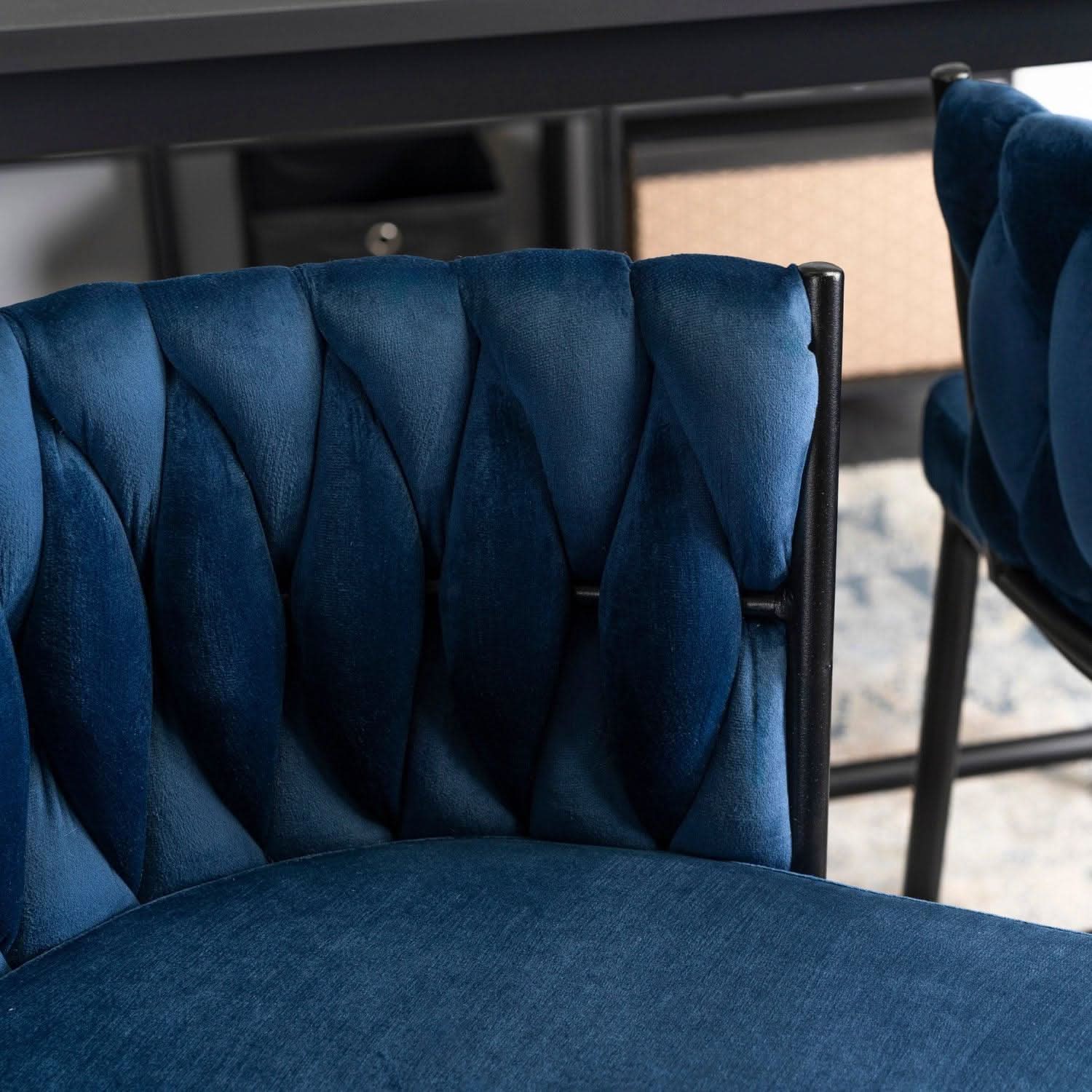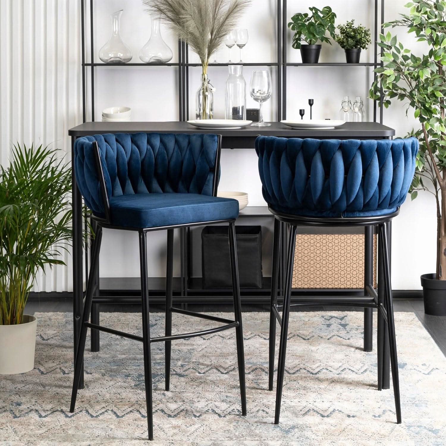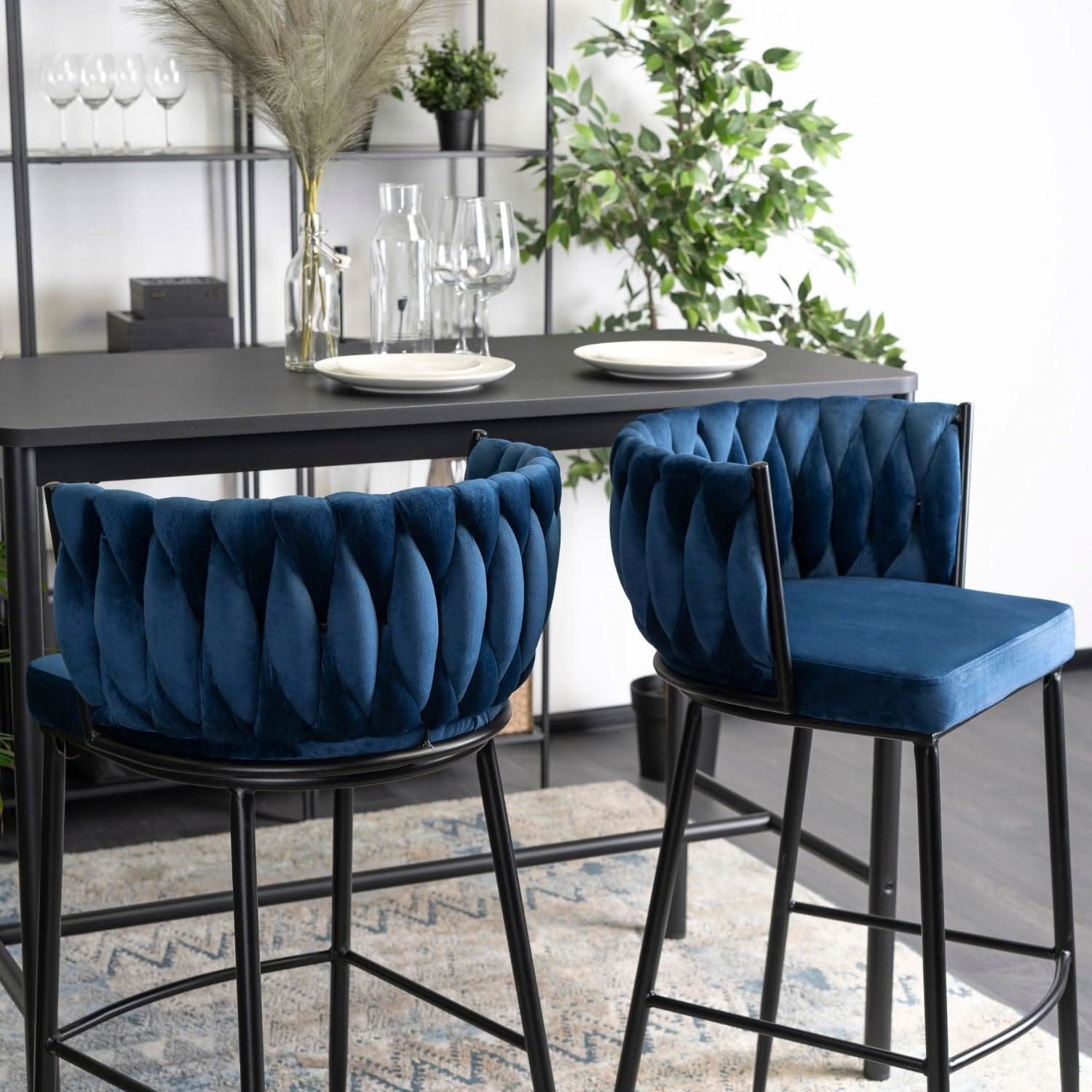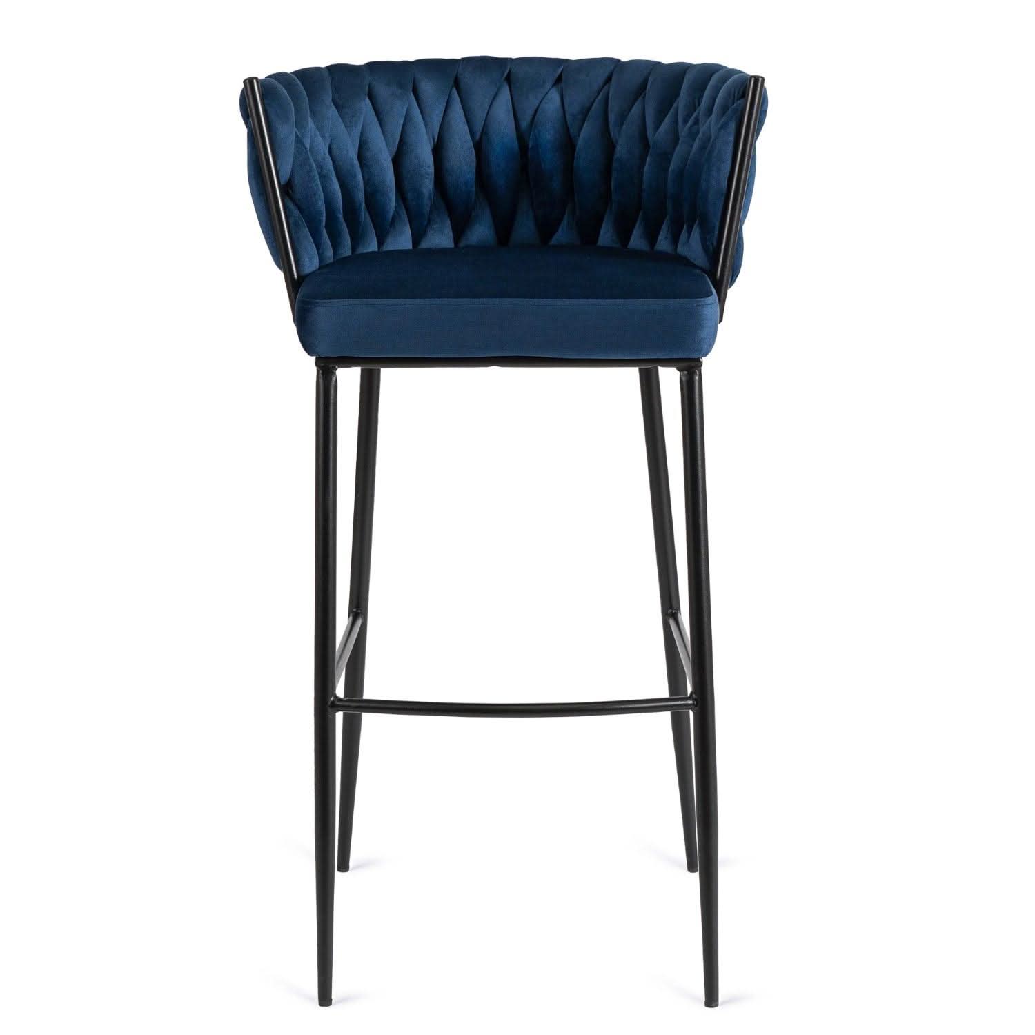 FLORES baro kėdė su austu atlošu – mėlynos spalvos aksomas