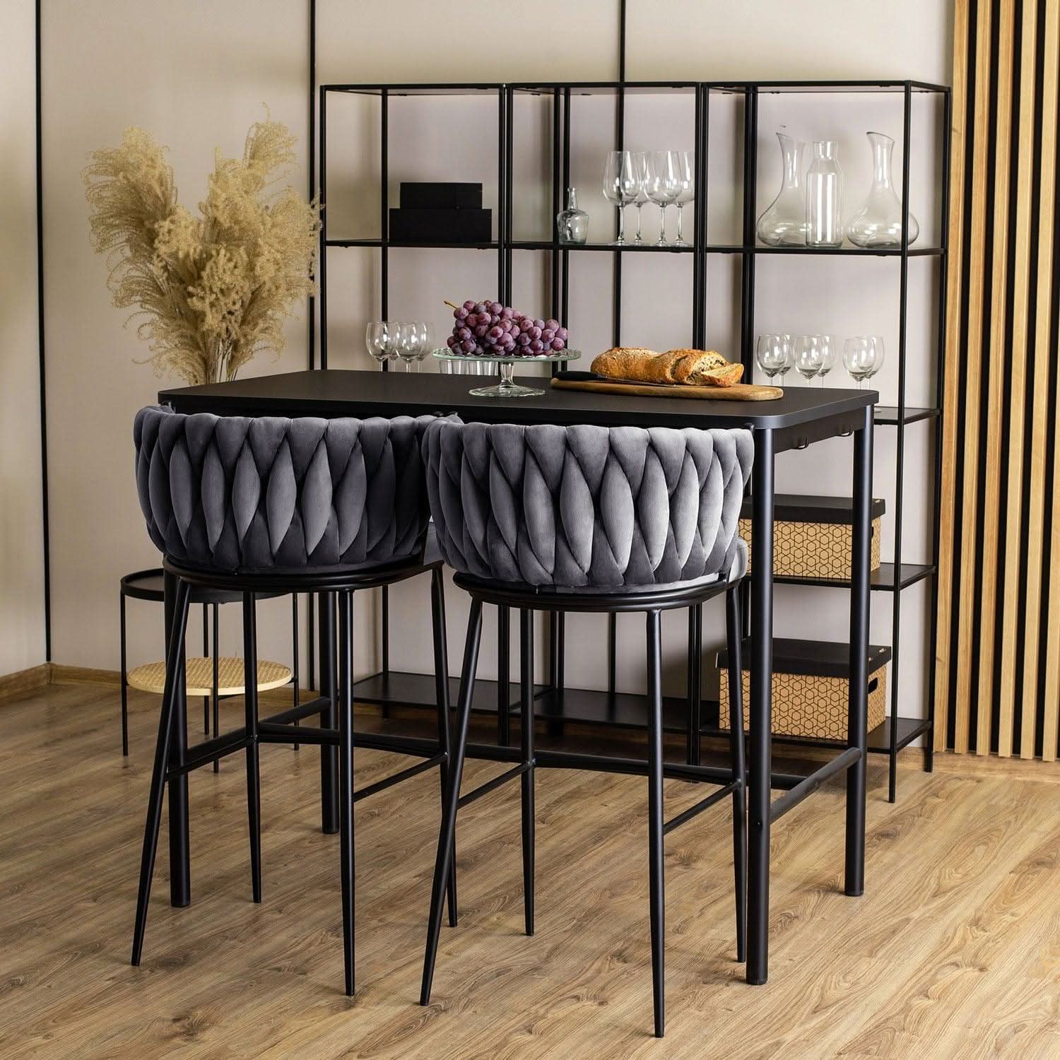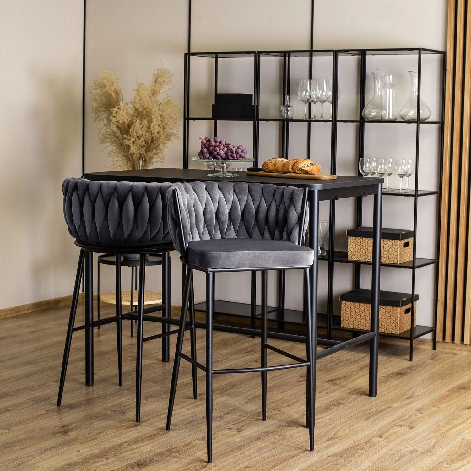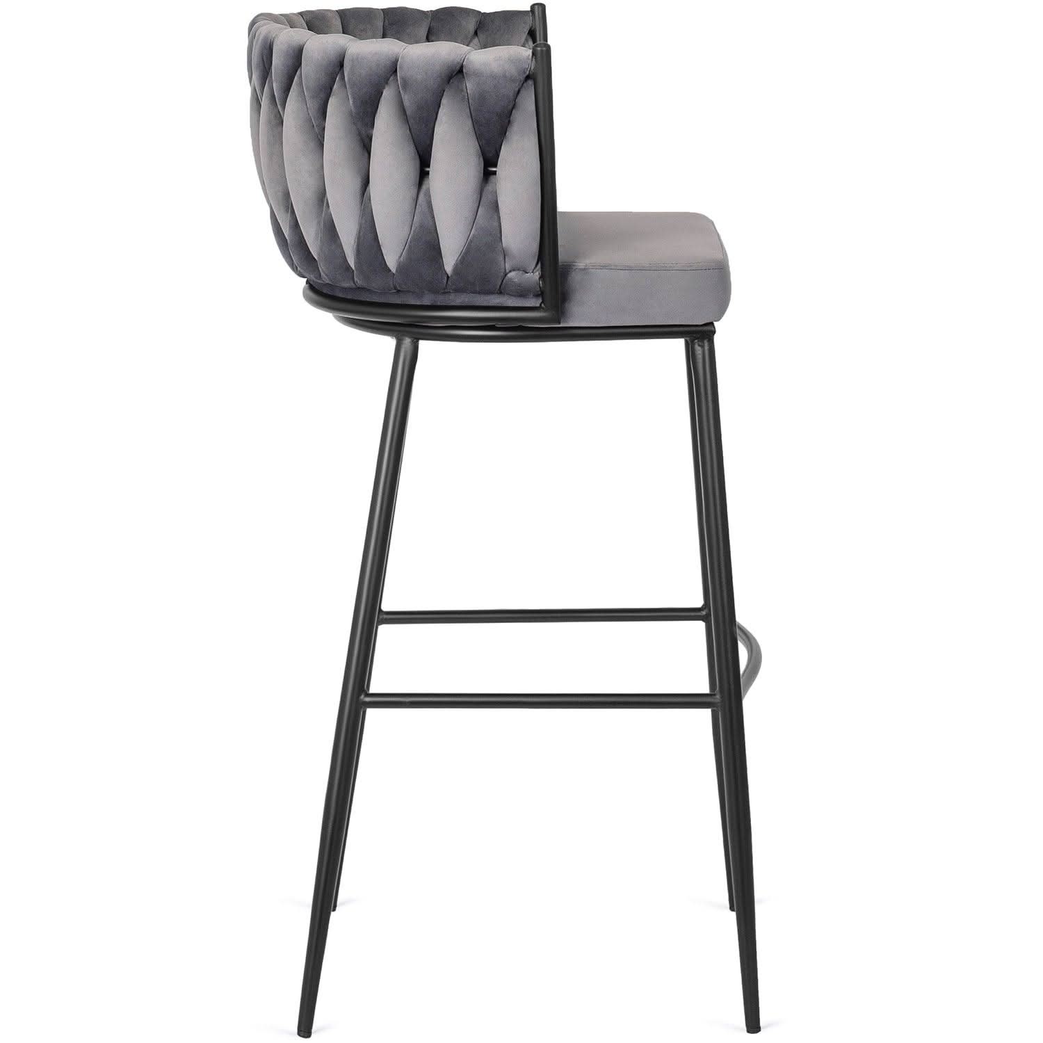 FLORES baro kėdė su austu atlošu – pilkos spalvos aksomas