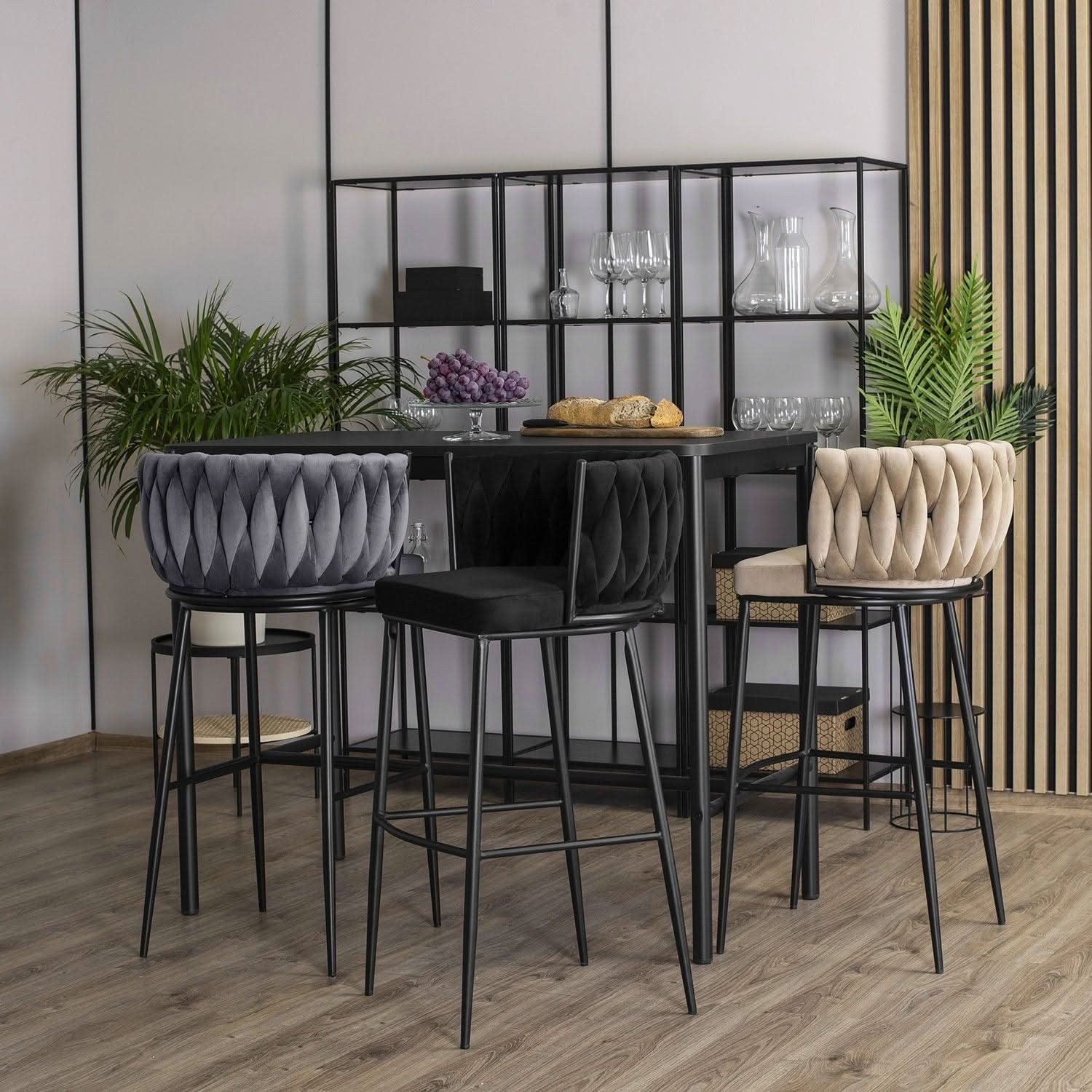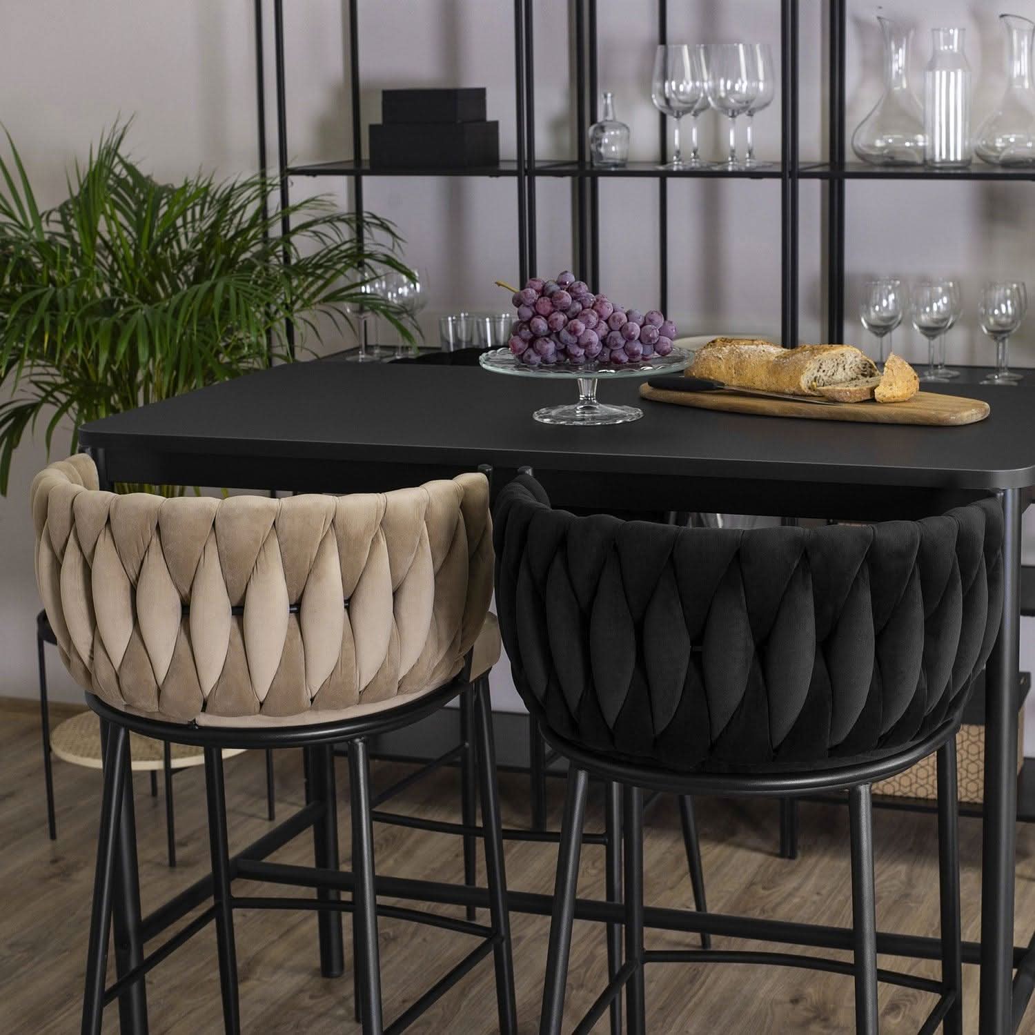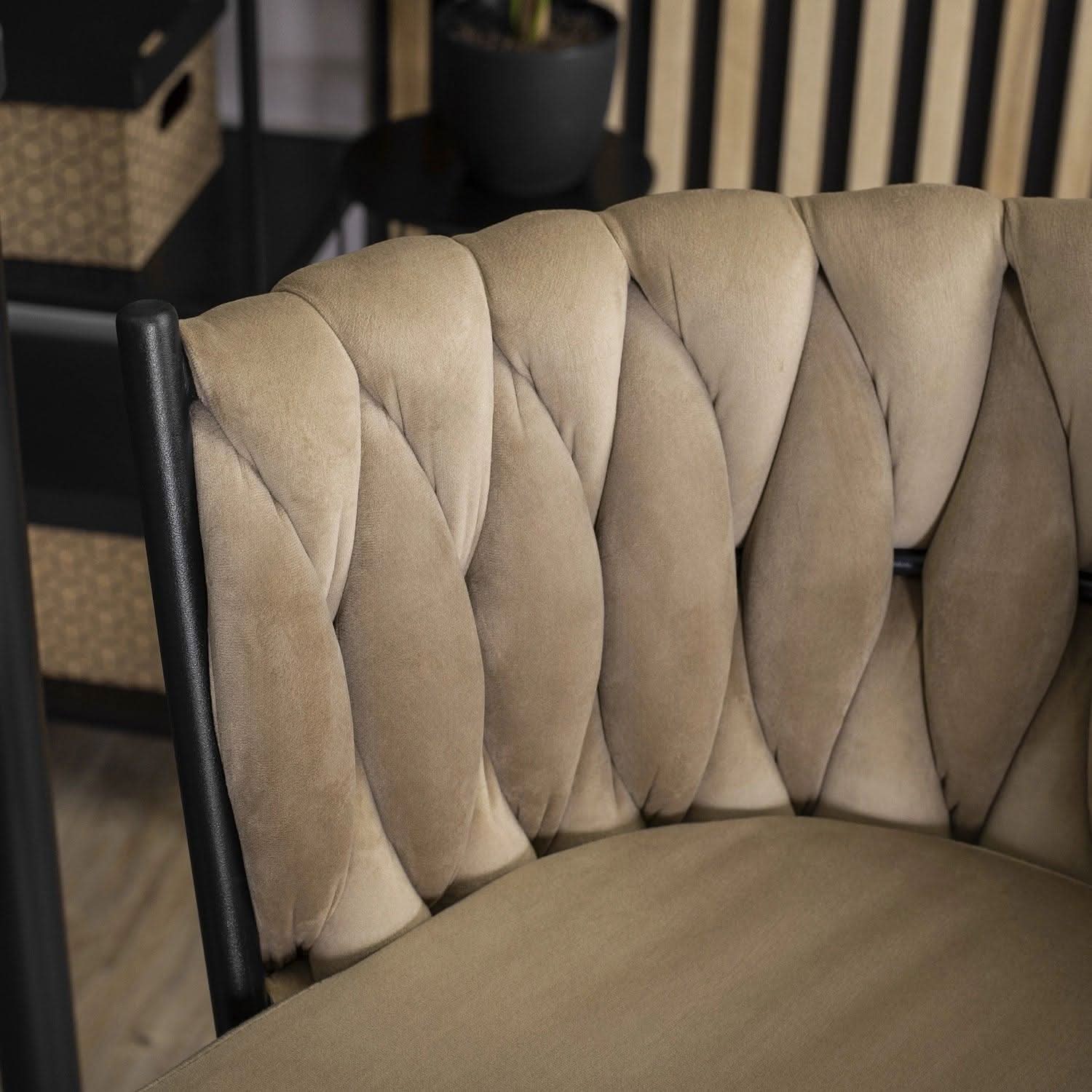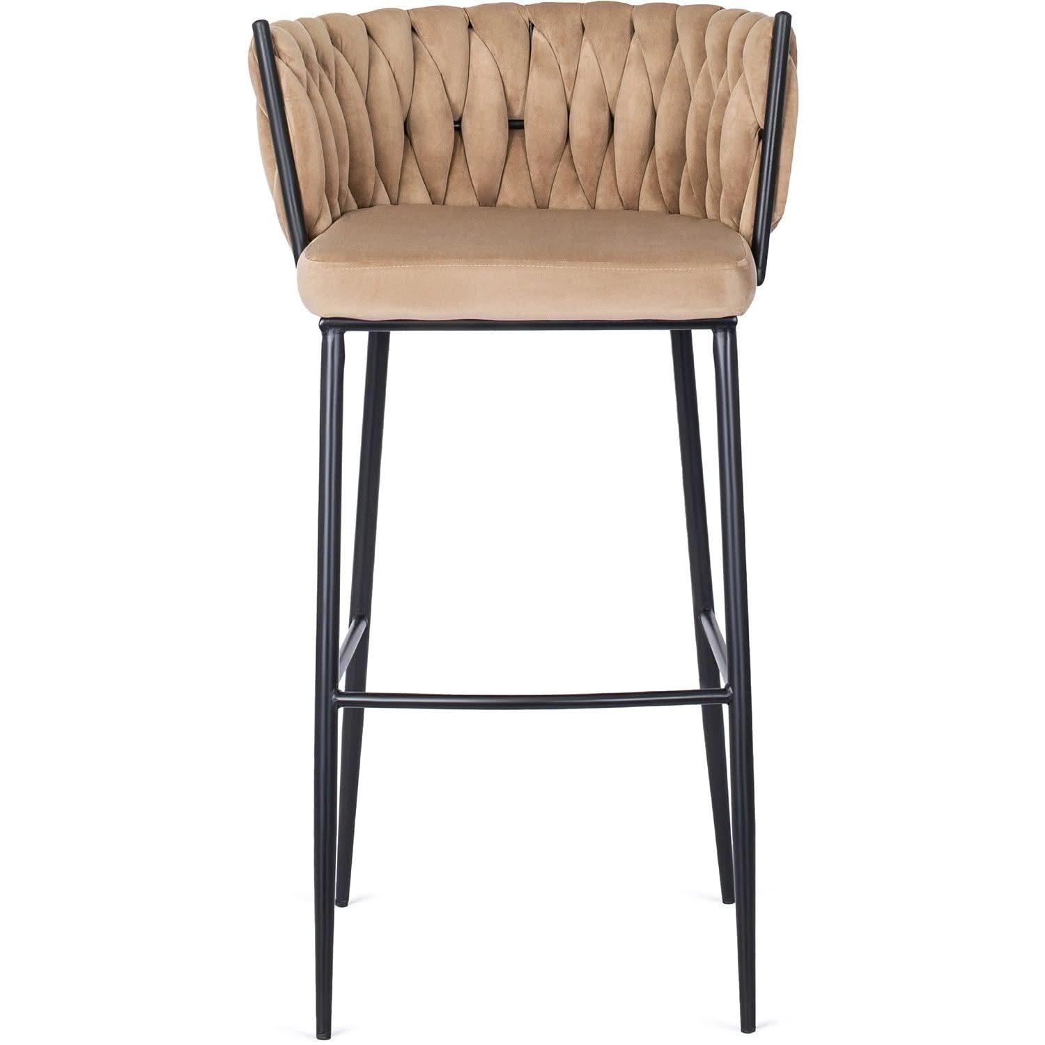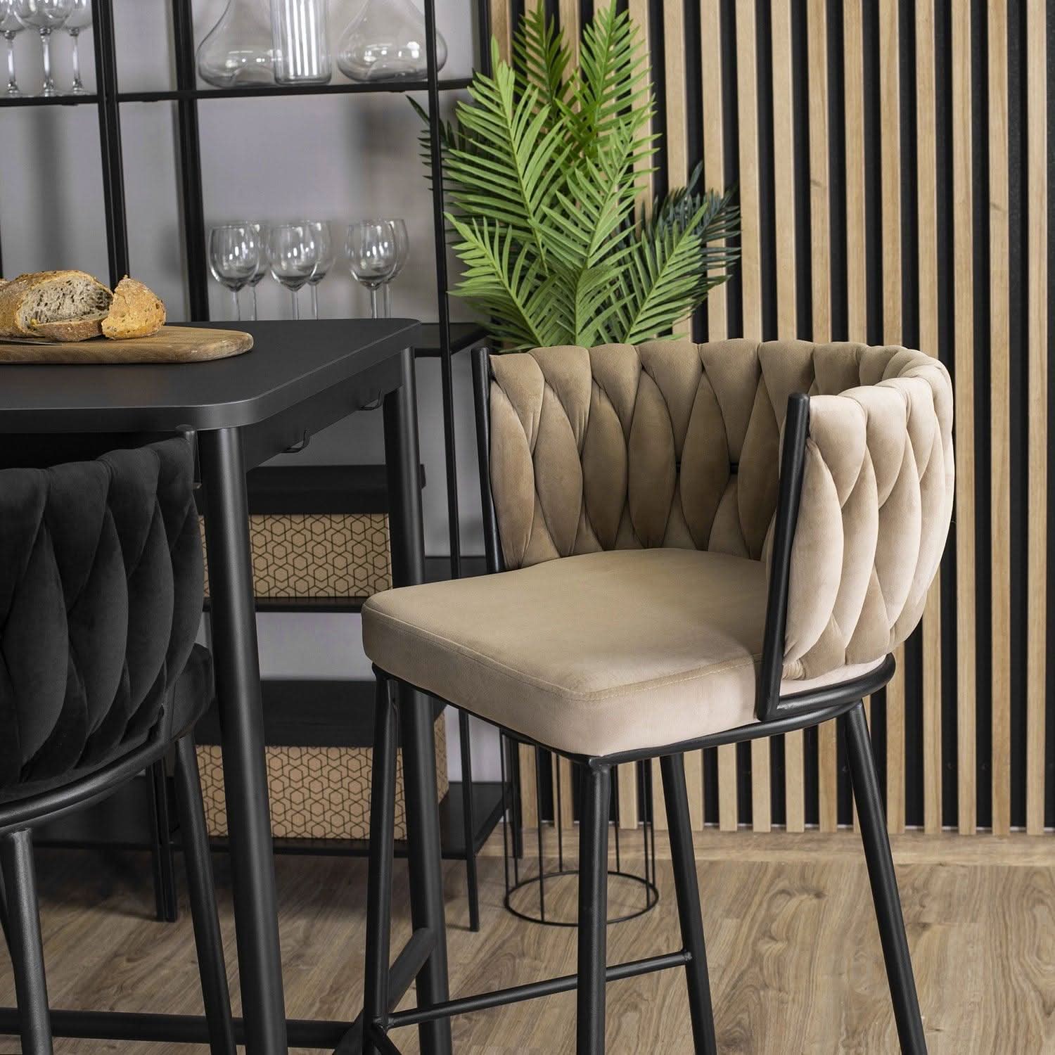 FLORES baro kėdė su austu atlošu – smėlio spalvos aksomas