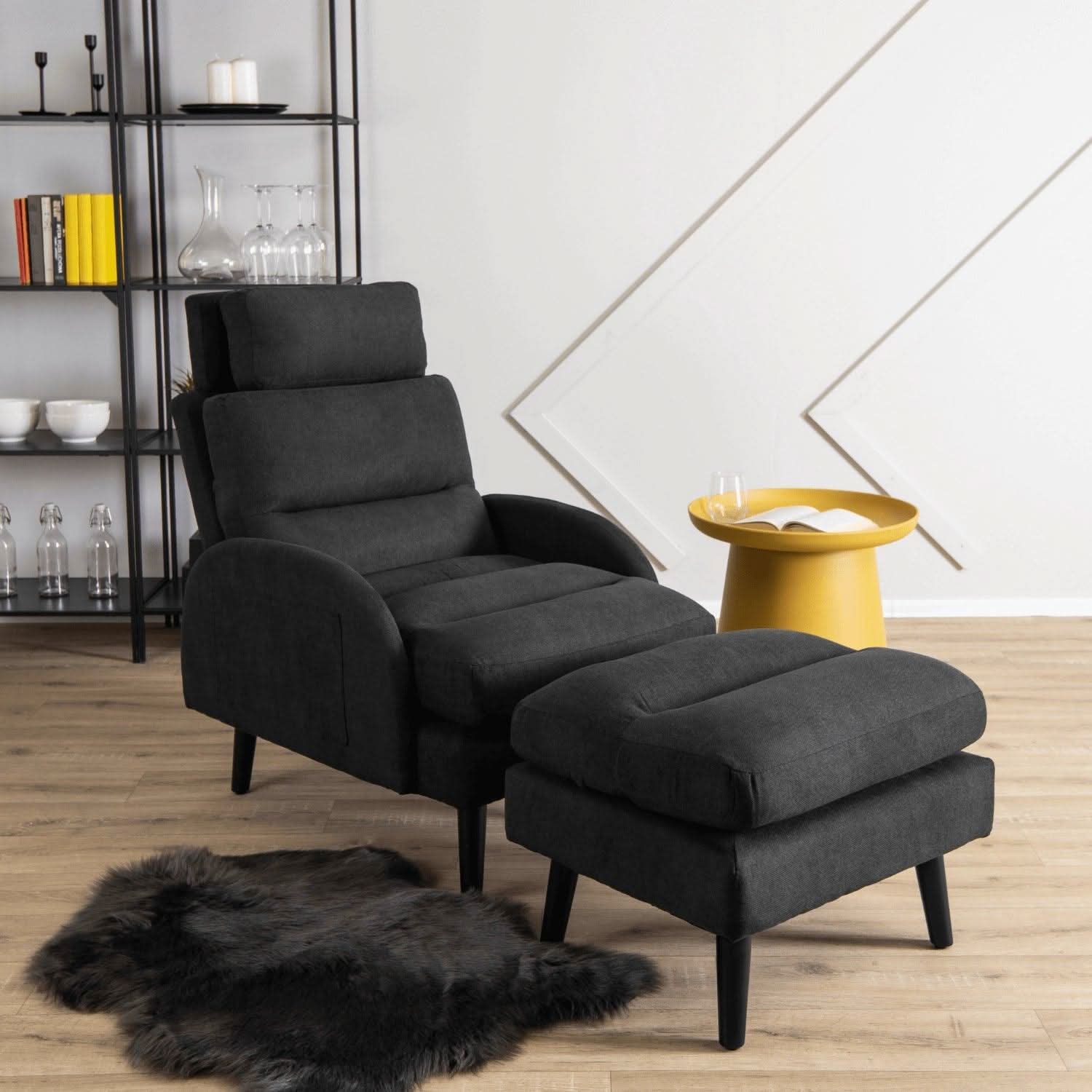 Fotelis su pakoju HENRY – juodas, modernus, Loftinis