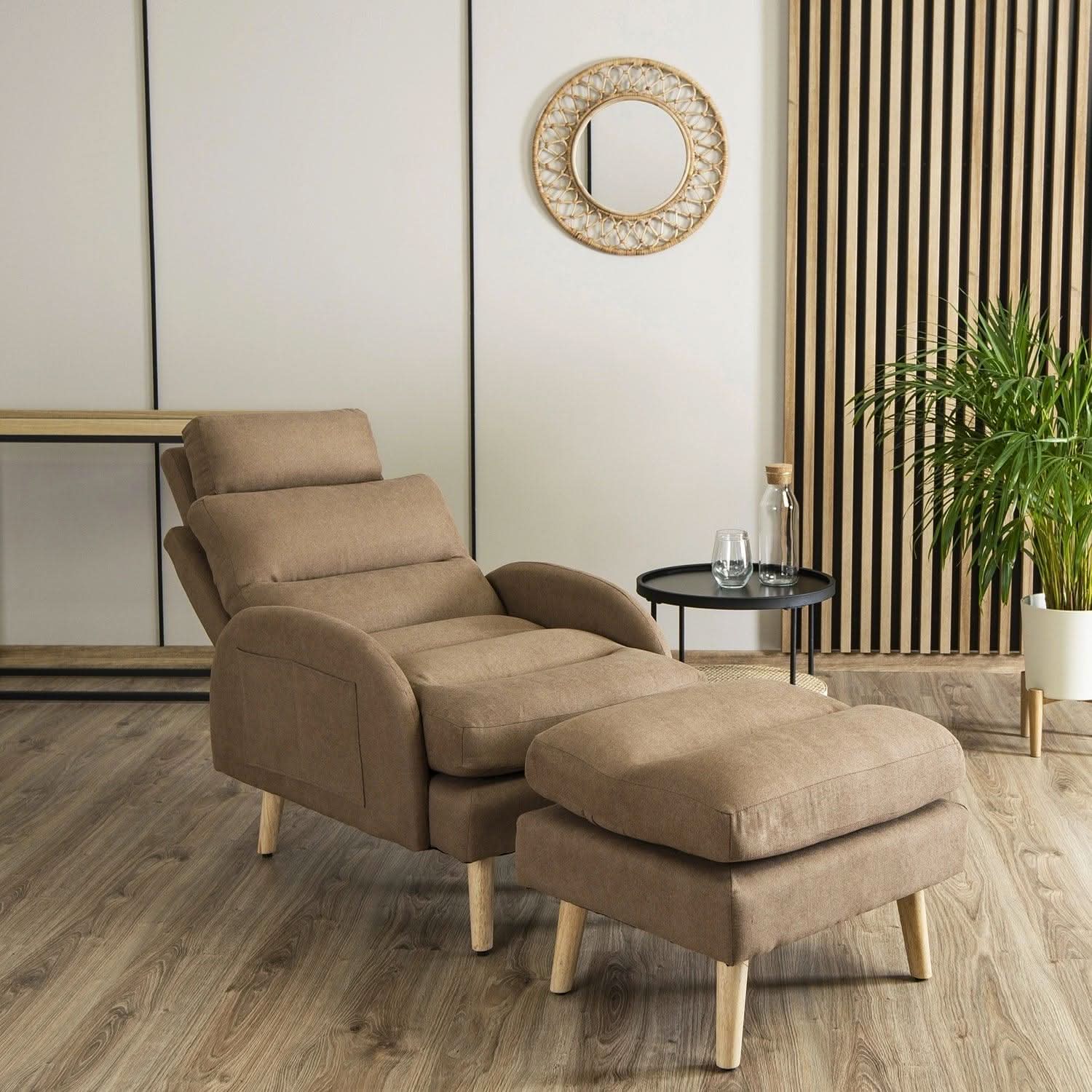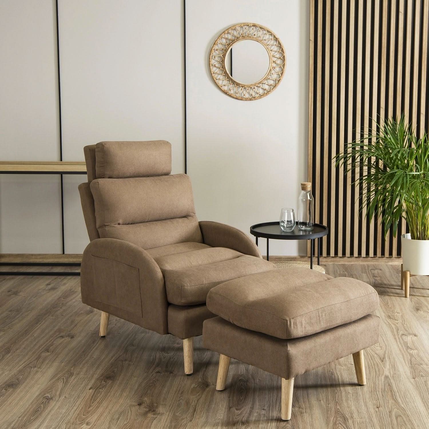 Susipažinkite - fotelis su pakoju HENRY, rudos spalvos. Šis fotelis su išskleidžiama funkcija yra elegancijos ir funkcionalumo derinys. Patogus sėdynės ir atlošo apmušalas iš minkšto, malonaus lietimui audinio užtikrina komfortą, o atrama kojoms leis atsipalaiduoti po sunkių dienos darbų. Ruda spalva suteikia baldui laikui nepavaldžią išvaizdą ir puikiai dera įvairiuose interjero stiliuose.