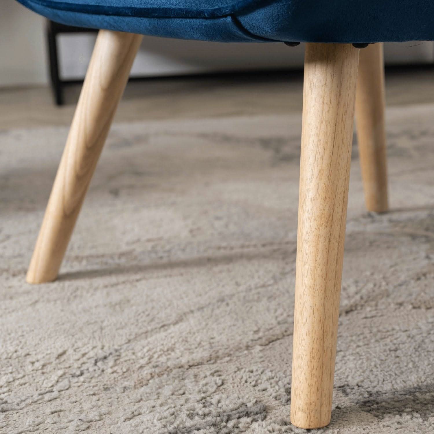 Fotelis ir pakojis stovi ant tvirtų, natūralios ąžuolo spalvos medinių kojų, užtikrinančių stabilumą ir ilgaamžiškumą. Nepaisant tvirtos konstrukcijos, fotelis atrodo lengvas ir puikiai tinka įvairiose erdvėse.