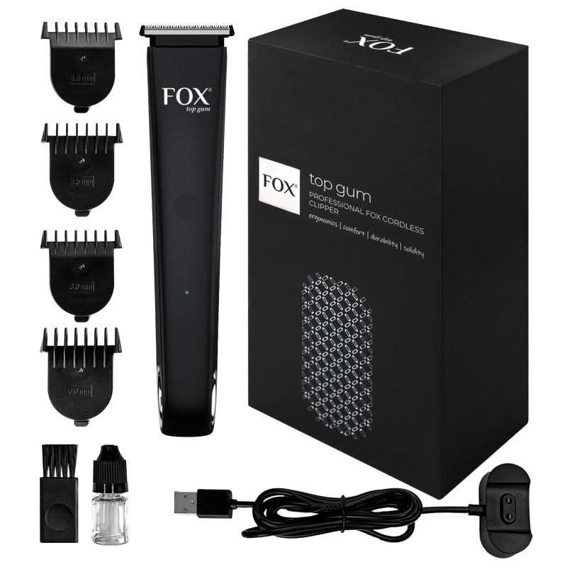 Profesionali FOX Top Gum akumuliatorinė mašinėlė turi įkraunamą ličio jonų akumuliatorių, todėl veikia tyliai. Dėl ergonomiško dizaino jis turi įtakos darbo patogumui. Su FOX Top Gum mašinėle belaidžiu būdu galima dirbti iki 300 minučių.