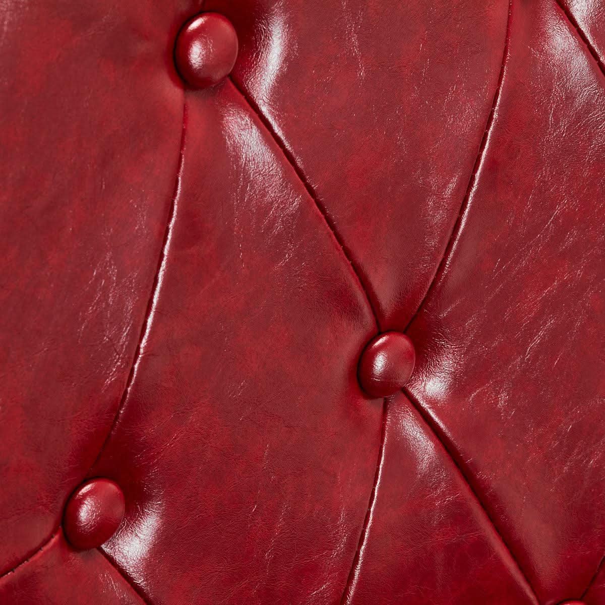 Tvirta bazė užtikrina stabilumą ir didelį naudojimo komfortą. Sėdynės užpildas pagamintas iš patvaraus, deformacijai atsparaus putplasčio, o apmušalai – iš malonios liesti sintetinės odos su blizgiu paviršiumi, užtikrinančiu baldo patvarumą ir patogų naudojimą ilgą laiką >. Jie taip pat padaro įrangą atsparią drėgmei, patvarią ir lengvai valomą. Raudonų atspalvių danga su skiautine ir dekoratyvinėmis sagomis suteikia jai unikalumo. Kėdė su būdingu dizainu, atsižvelgiant į vintažinį stilių, puikiai dera prie kirpyklų atmosferos, pabrėžia jų unikalią atmosferą.