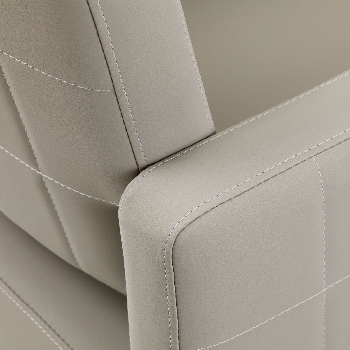Patogi kėdė užpildytas tvariu ir deformacijai atspariu putplasčiu, kuri užtikrina ilgalaikį naudojimą, aukštą komfortą ir patogumą net per daugelį procedūrų valandų. Apmušalai pagaminti iš malonios liesti sintetinės odos, o tokios medžiagos naudojimas padaro įrangą atsparią drėgmei, patvarią ir labai lengvai valoma. Pilkų atspalvių viršelis su vizualiai įdomiais elementais suteikia unikalaus charakterio. Įranga išsiskiria elegantišku dizainu, todėl kėdė puikiai atrodo daugelyje interjerų.