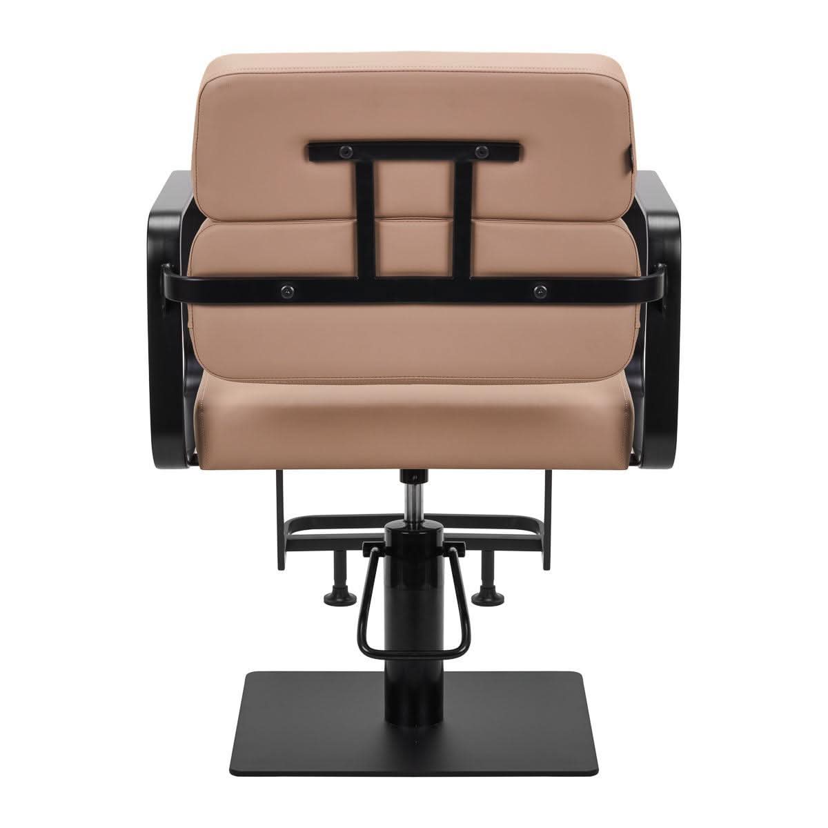 Visas kėdės sukimosi mechanizmas padaro kirpėjo darbą efektyvesnį ir patogesnį . Tvirtas, plokščias, kvadrato formos pagrindas garantuoja stabilumą naudojimo metu. Matinis, lygus paviršius suteikia elementui elegantišką išvaizdą ir jį lengva išlaikyti švarų. Patogi sėdynė su putplasčio užpildu užtikrina didelį naudojimo komfortą, net ir daug valandų trunkančiomis procedūromis. Geometriniai, metaliniai porankiai leidžia teisingai išdėstyti kliento pečius – tai reiškia, kad jis neįkiša galvos į pečius ir nelinksta – o tai labai palengvina tikslių procedūrų atlikimą, įskaitant kirpimus. Šiam modeliui skirta stilinga kojų atrama užtikrina stabilią atramą naudotojo kojoms.