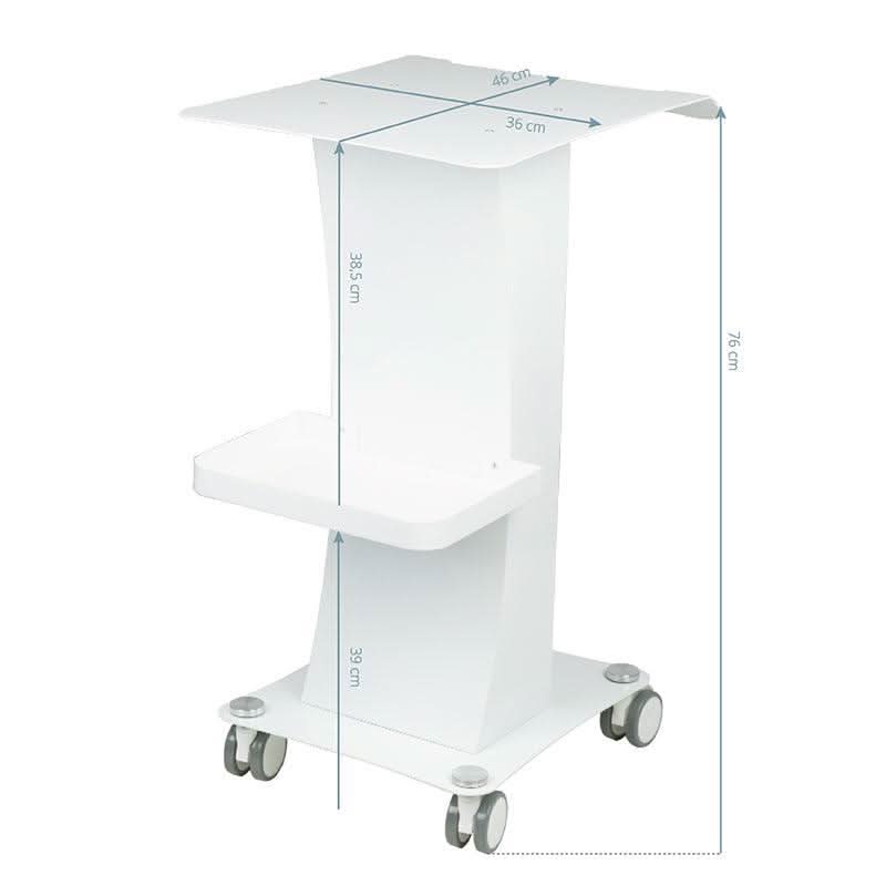 Funkcionalus, metalinis staliukas su guminiais ratukais ir fiksavimo funkcija. Puikiai tinka kaip stalas kosmetikos prietaisui. jame yra stabili lentynėlė įrenginiui ir kita lentynėlė priedams, o ratukų dėka stalas yra mobilus ir lengvai perkeliamas. Baldas suteikia patogumo ir komforto darbo metu.