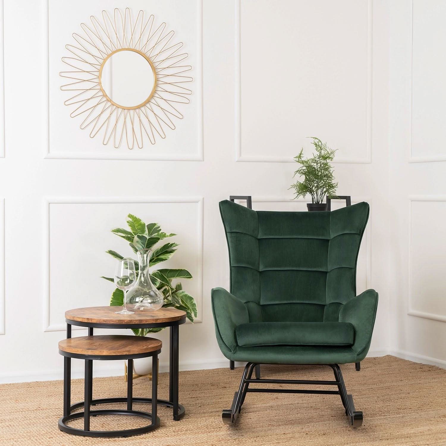 Žalia – spalva, kuri ramina, nuramina ir įneša harmoniją. Ji primena smėlio švelnumą, besileidžiantį tarp pirštų, arba švelnų saulėlydžio švytėjimą. Jackson supamasis krėslas – tai laikinas paprastumo ir funkcionalumo derinys, kuris žavi. Atsisėskite, apgaubkite save minkštos audinio komfortu ir pajuskite, kaip kiekviena akimirka šiame krėsle virsta tikra atsipalaidavimo akimirka.