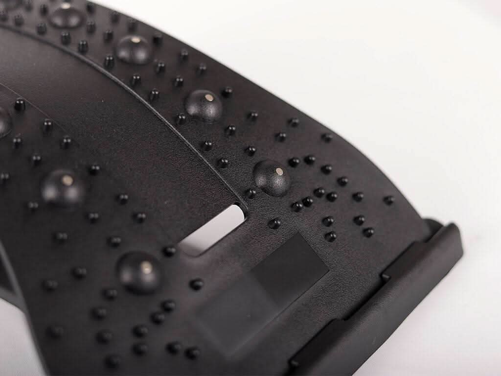 Prietaisas turi stabilų pagrindą ir per jo centrą einantį minkštą, patogų elementą iš porolono, kuris sumažina spaudimą slanksteliams. Palei šoninius dirželius yra masažiniai iškyšuliai ir magnetai, kurie gerina kraujotaką, veikia kaip akupunktūra ir sukuria mikromagnetinį lauką. Be to, "Habys Neck Stretcher" turi specialų profilį, kuris puikiai palaiko galvą kaklo dalyje. Prietaisą galima naudoti ir pratimams, ir atpalaiduojančiam masažui.