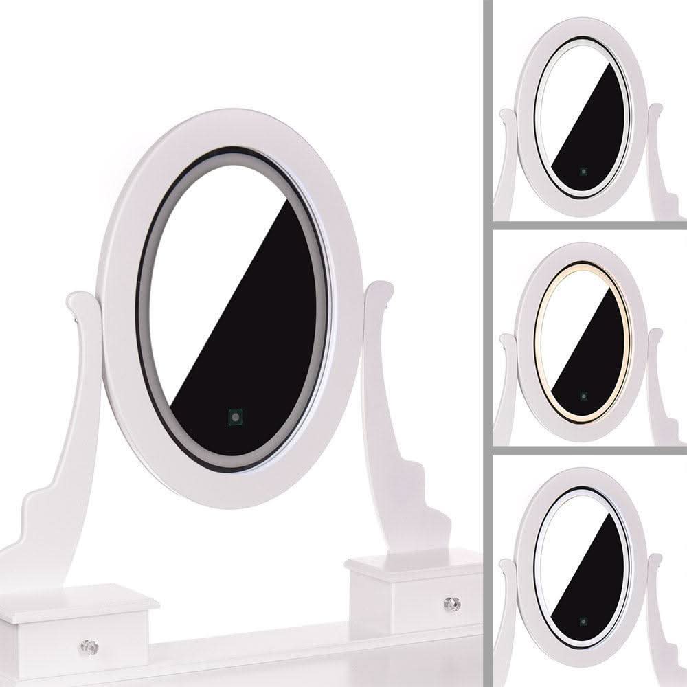 KARI baltas kosmetinis staliukas su LED veidrodžiu, kėdute