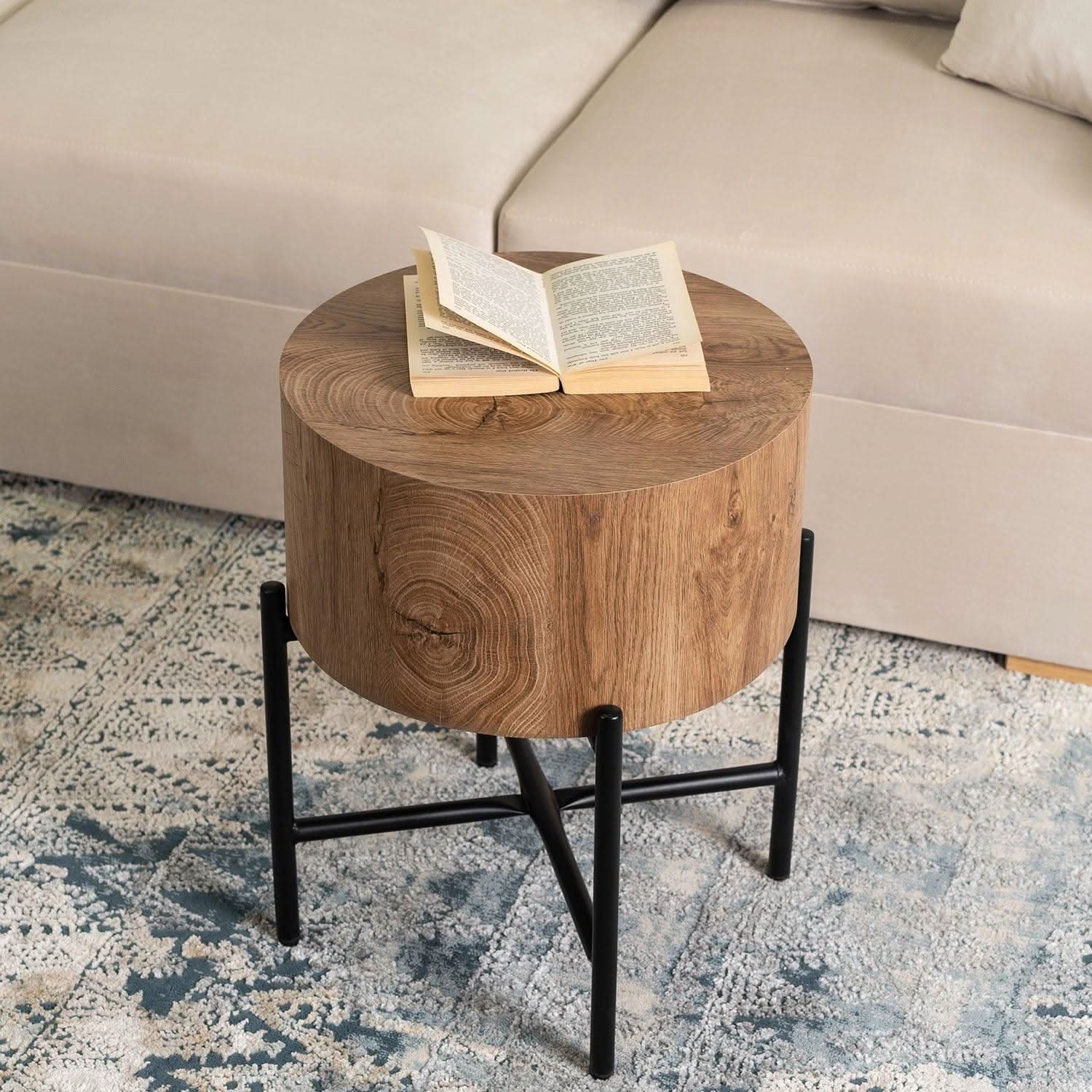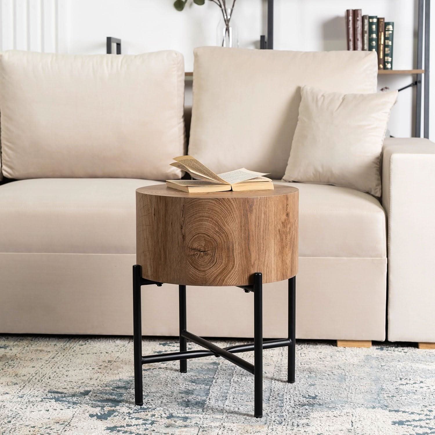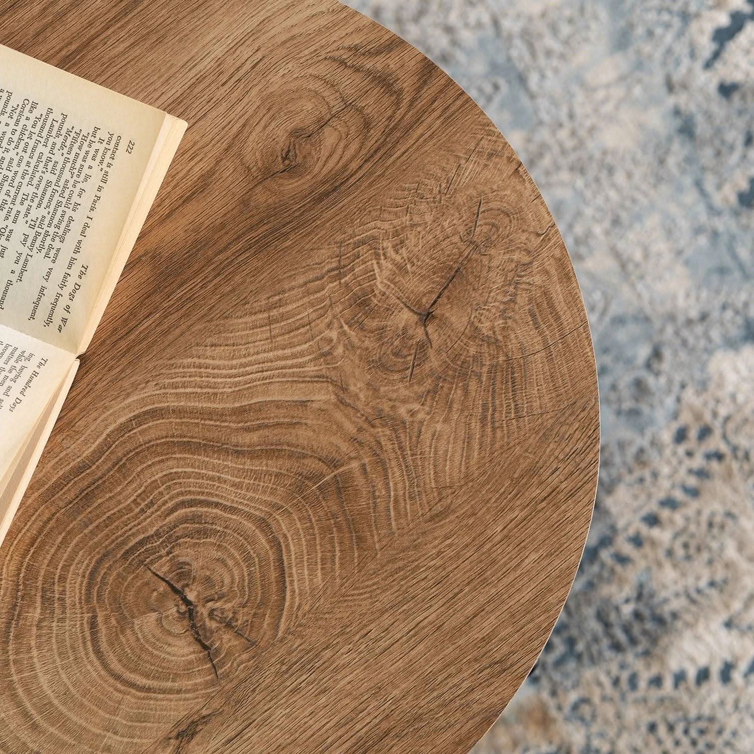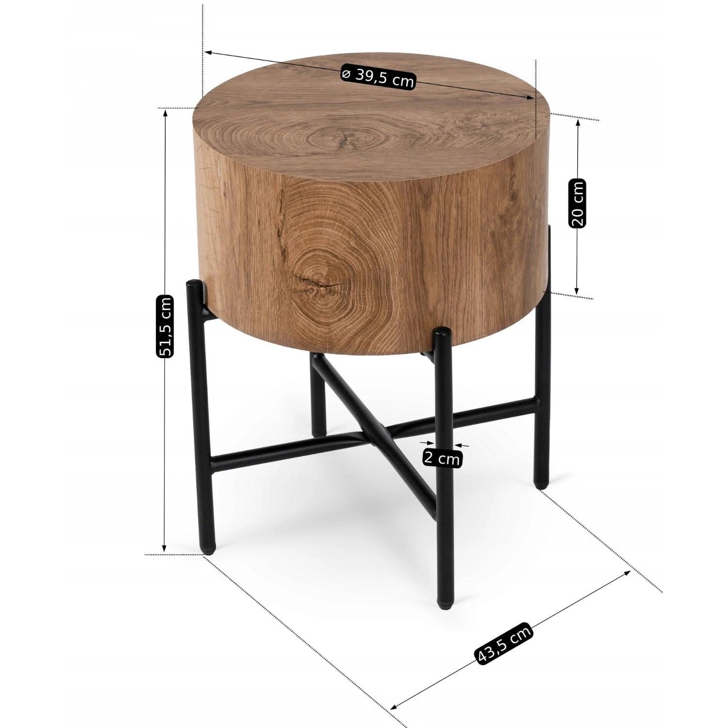 Kavos staliukas CEVES – 39,5 cm, natūralaus ąžuolo spalvos, modernus Lofto stilius
