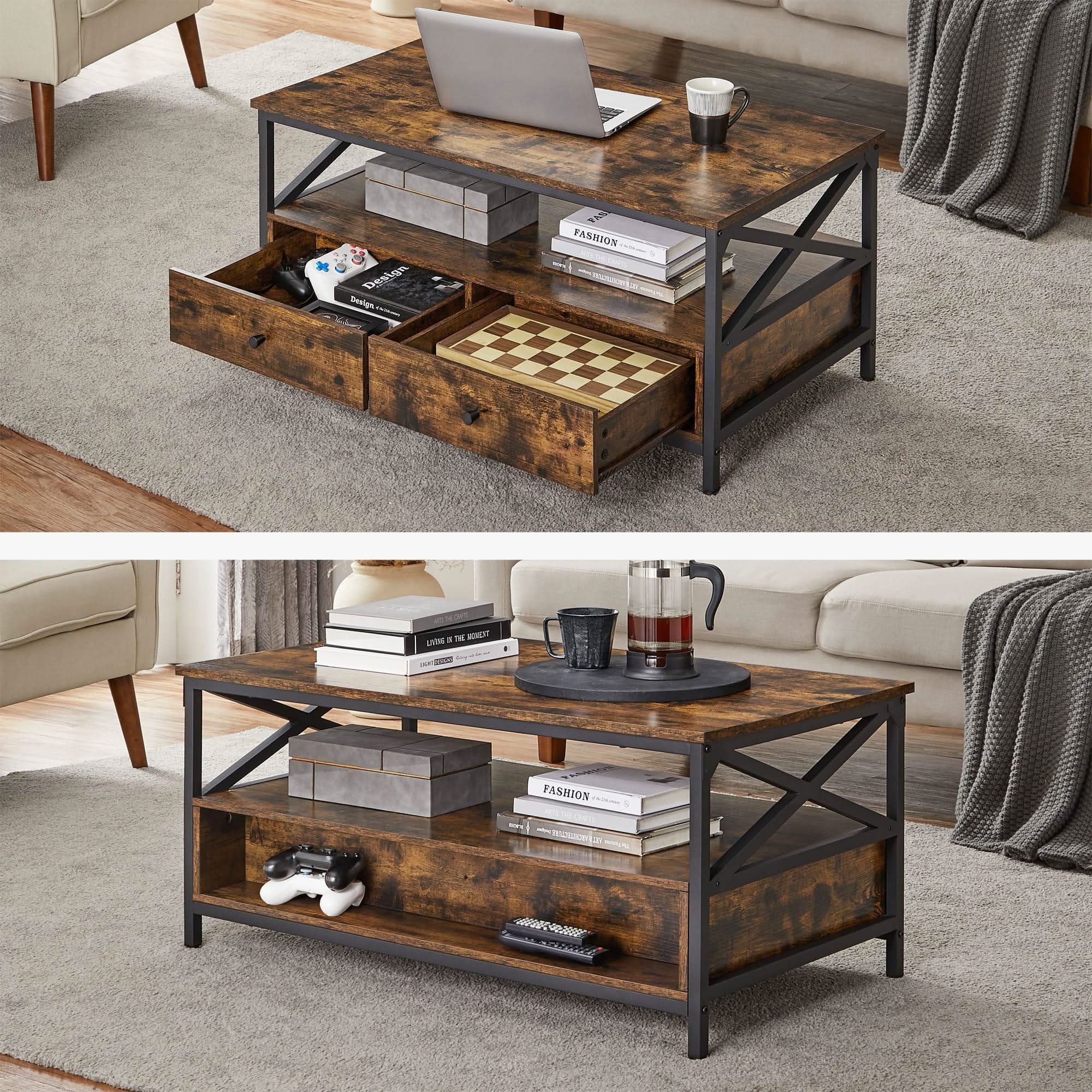 Tinkami stalo matmenys suteikia pakankamai vietos kavos puodeliams, nešiojamam kompiuteriui, televizoriaus nuotolinio valdymo pultui ir padėklui su užkandžiais. Papildomas privalumas yra du stalčiai ir lentyna, kuri kasdien naudojama knygoms, žurnalams ir nuotolinio valdymo pultams laikyti. Dėl universalumo ir praktiškumo kavos staliukas taps vienu mėgstamiausių jūsų namų baldų.
