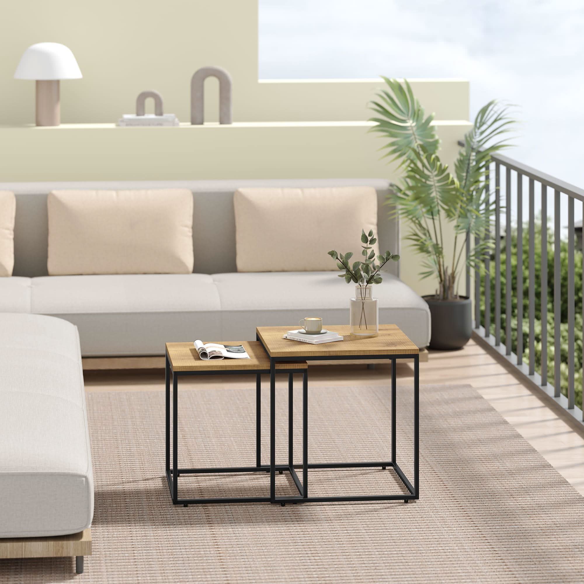 Kavos staliukų kopmplektas, ažuolo su juodom kojom spalvos, 2 vnt.