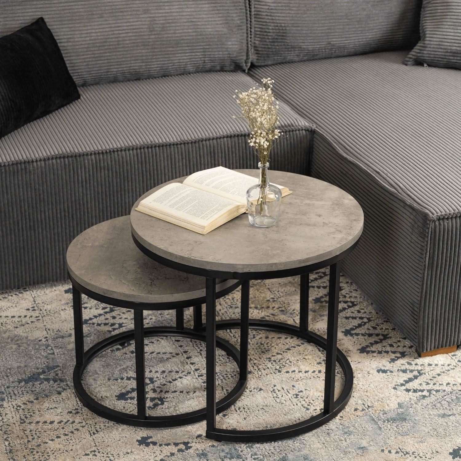 Dviejų dalių kavos staliukai ROCKY su pilko betono apdaila, LOFT stiliaus