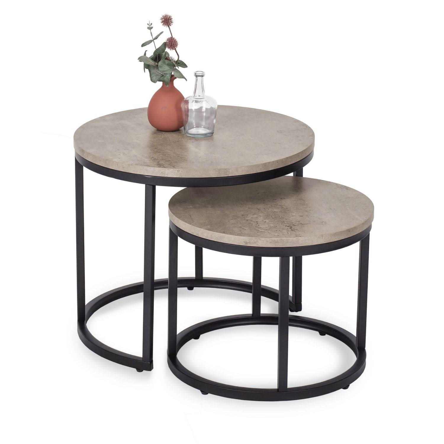 Kavos staliukų rinkinys ROCKY 43 cm/53 cm, pilka betono spalva