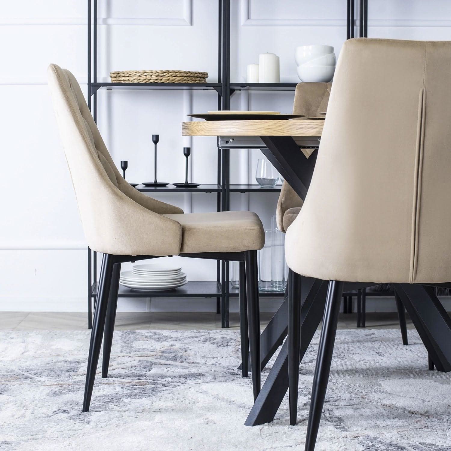 Stilingi siuvinėjimai: Kėdės apmušalai turi elegantiškus rombo formos siuvinėjimus, kurie papildo bendrą išvaizdą ir suteikia prabangos jausmą.