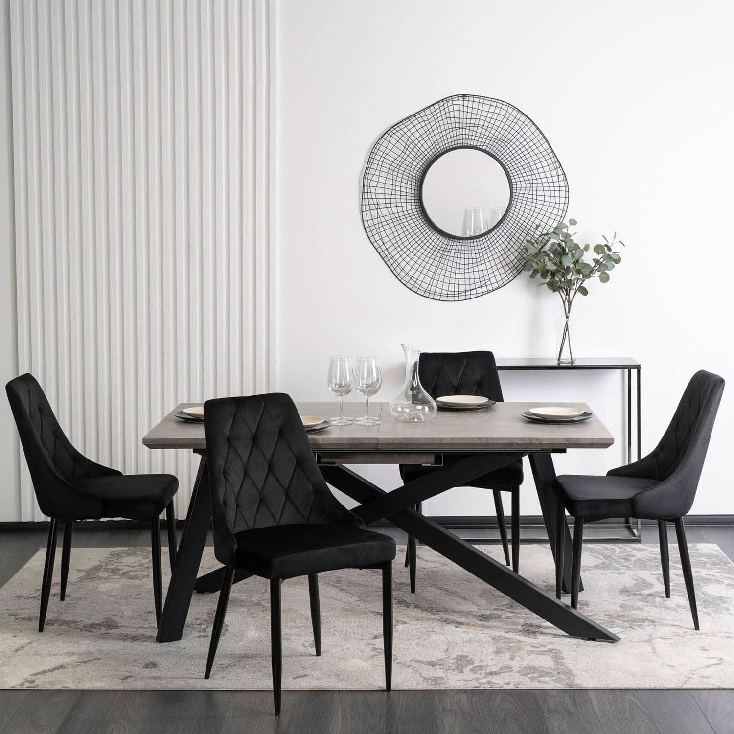 Stilingi siuvinėjimai: Kėdės apmušalai turi elegantiškus rombo formos siuvinėjimus, kurie papildo bendrą išvaizdą ir suteikia prabangos jausmą.