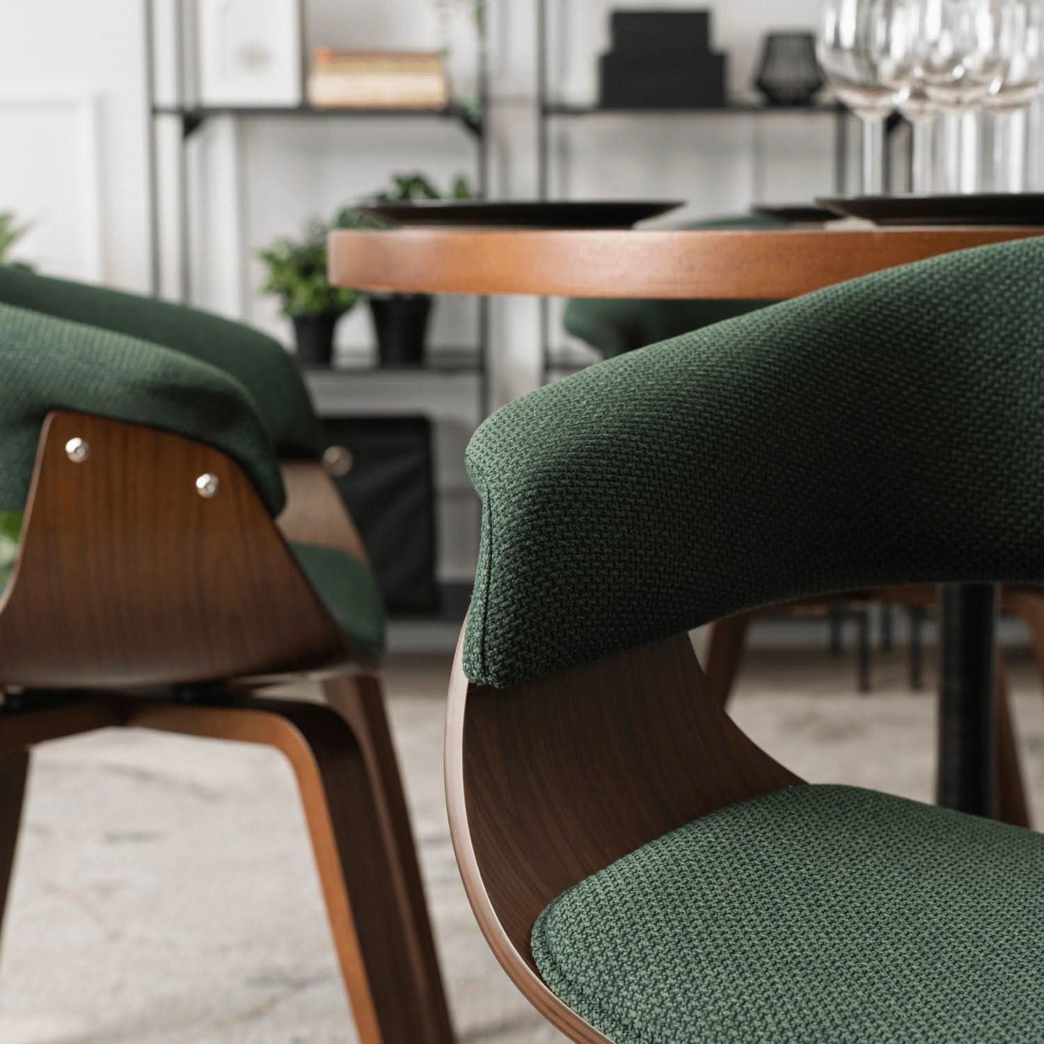 Kėdė loft stiliaus Gary graikinio riešuto kojos, žalios spalvos
