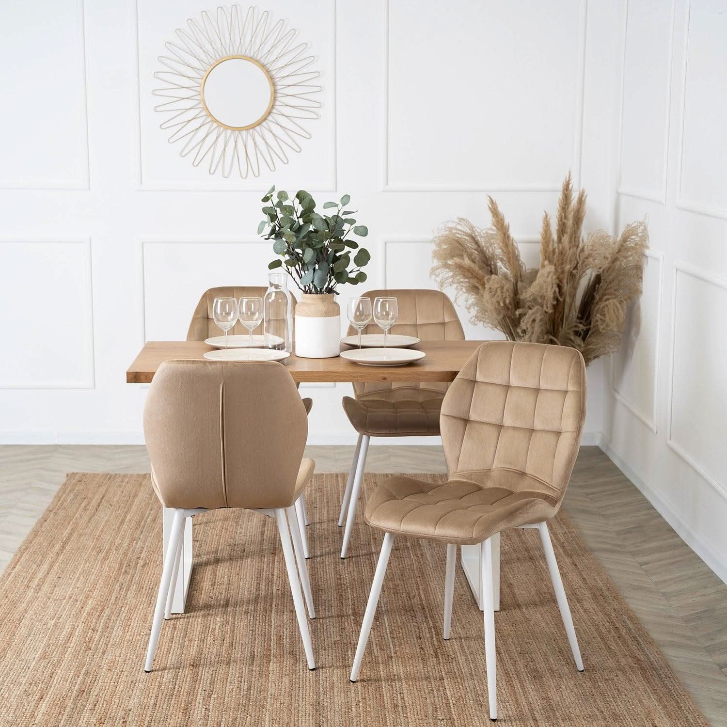 Kėdė LUCKY, smėlinis aksomas su baltomis kojomis
