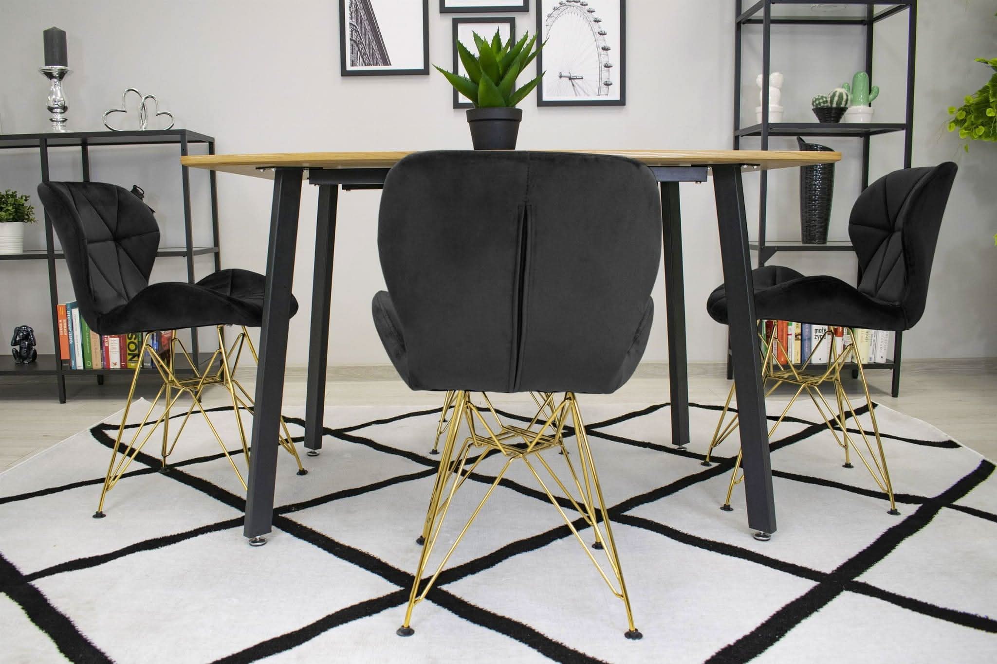Kėdė NEST, juodas aksomas/auksinės kojos