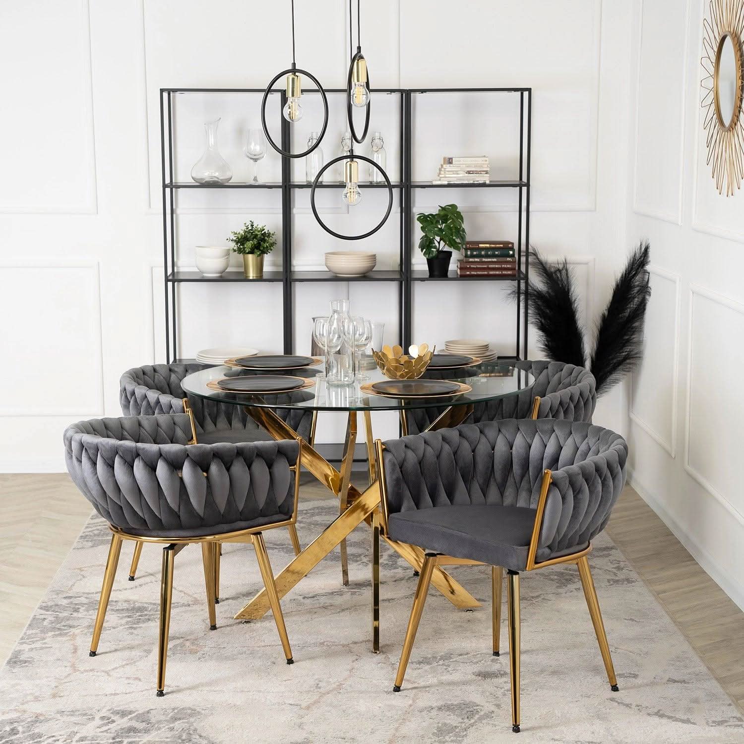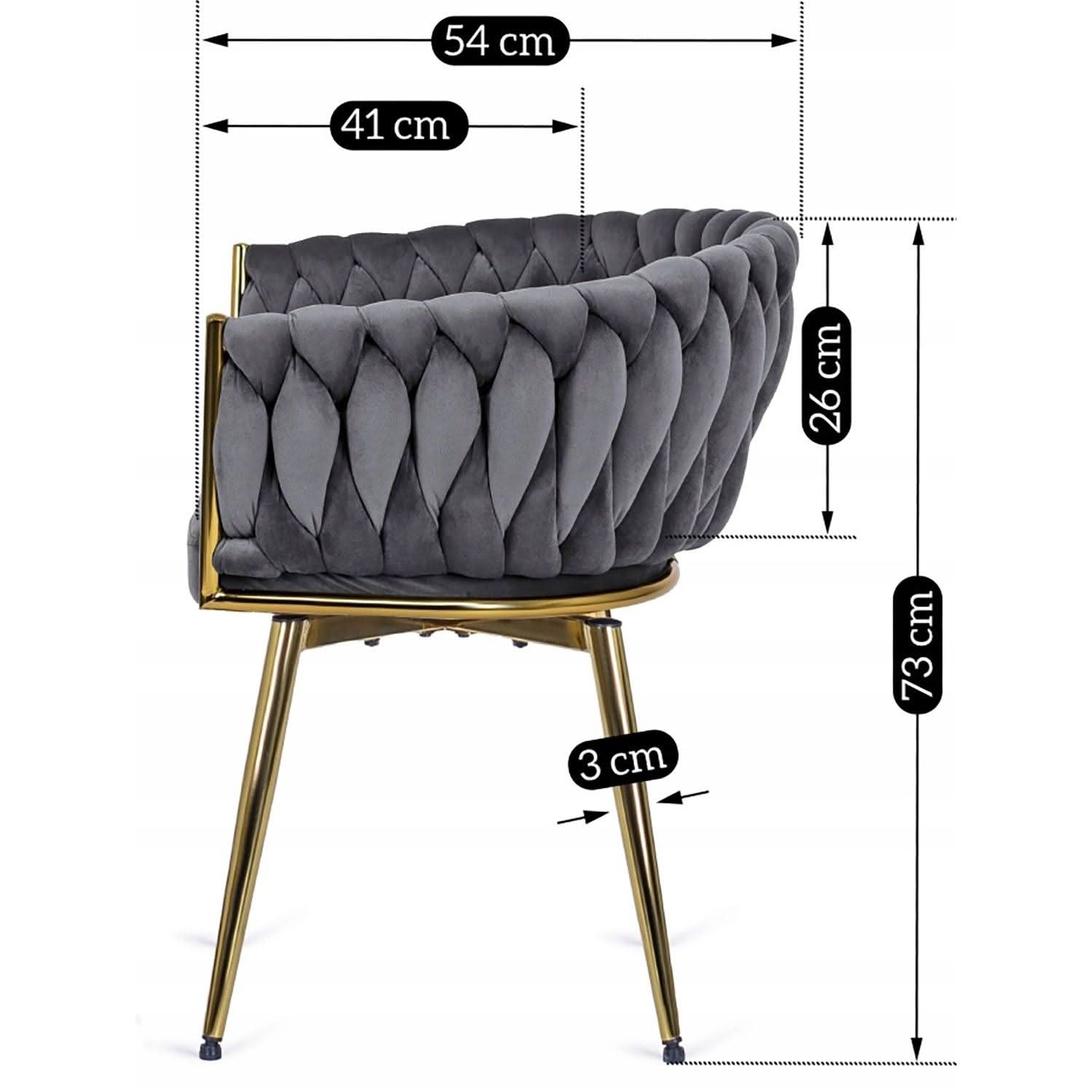 Kėdės atlošas buvo sukurtas pagal ergonomikos ir komforto principus, tuo pačiu tapdamas elegantišku dekoro elementu. Subtilūs siūlai ir audinys sukuria subtilų ir kartu intriguojantį raštą, suteikiantį kėdei unikalų charakterį. Sėdynė yra minkšta, užtikrinanti komfortą net ilgai naudojantis, puikiai tinka dirbantiems prie stalo arba mėgaujantis maistu prie valgomojo stalo.