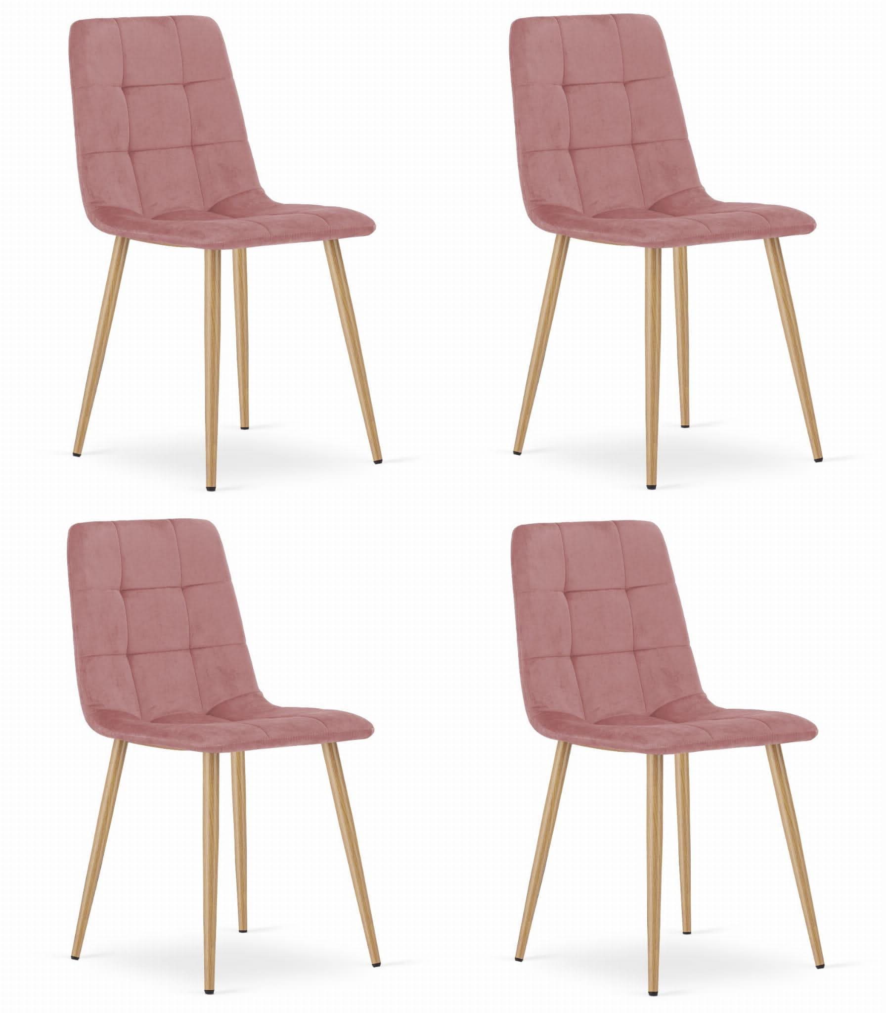Kėdės KARA, rožinės spalvos aksomo/medžio spalvos kojos, 4 vnt.