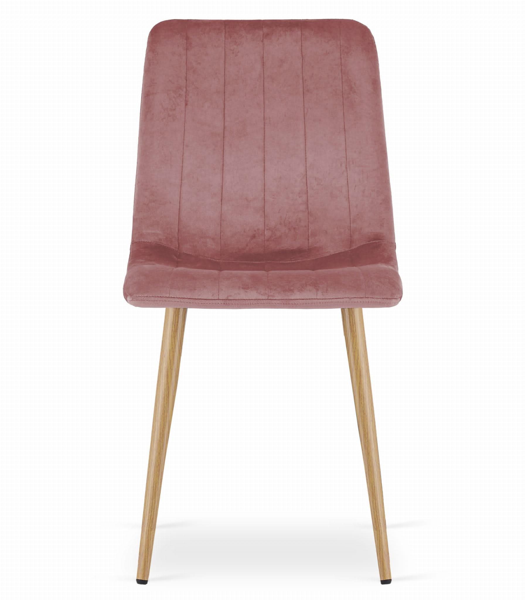 Kėdės LAVA, rožinis aksomas/medžio spalvos kojos, 3 vnt.