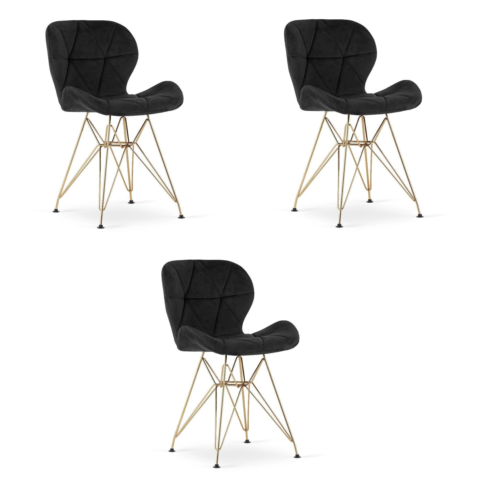 Kėdės NEST, juodas aksomas/auksinės kojos, 3 vnt.