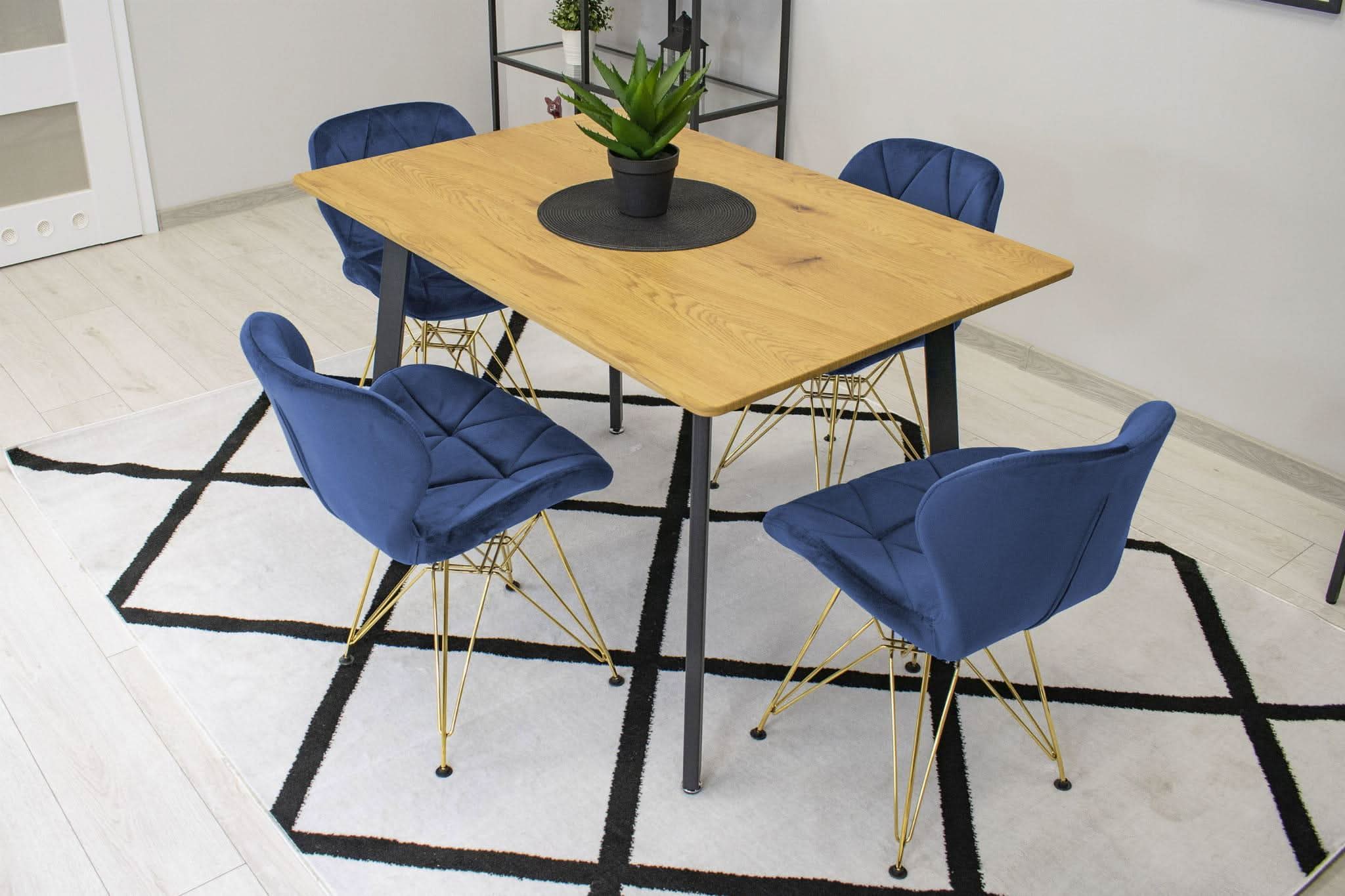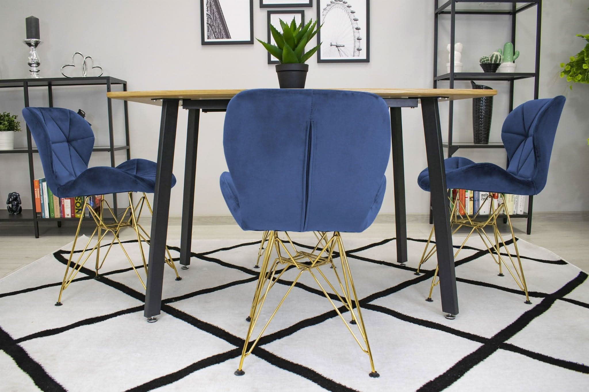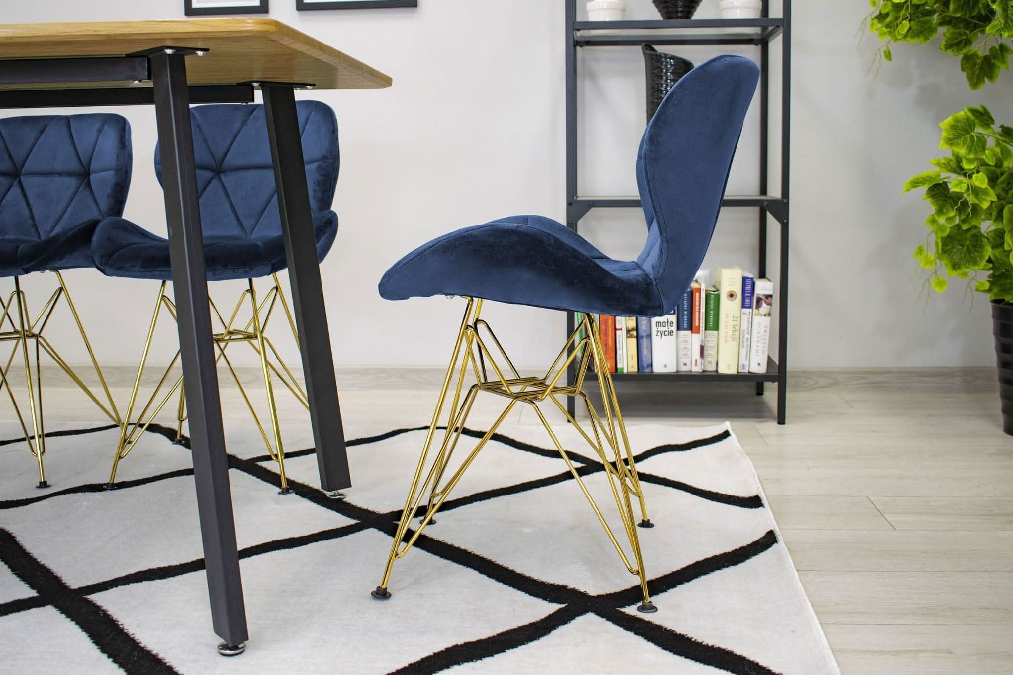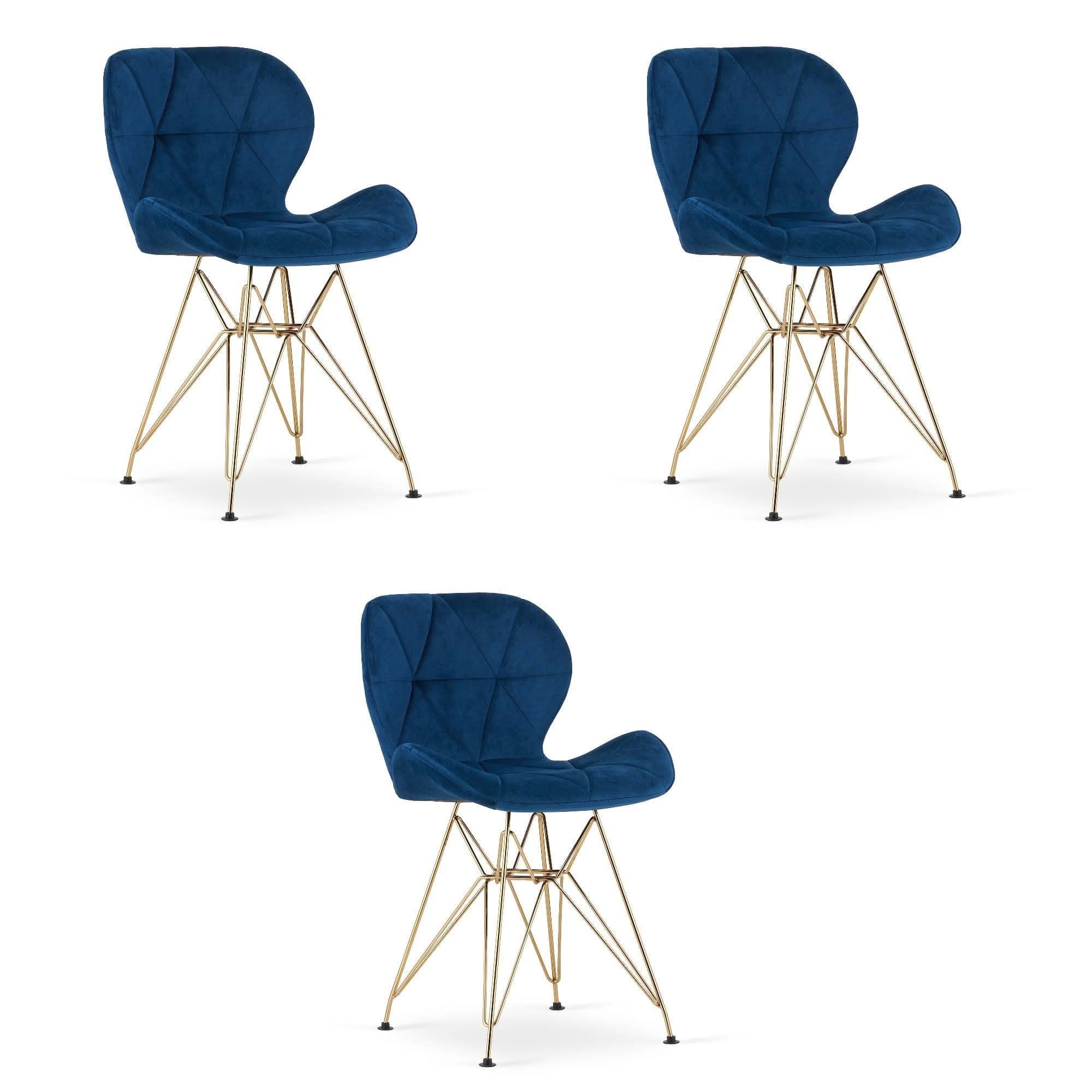 Kėdės NEST, mėlynas aksomas/auksinės kojos, 3 vnt.