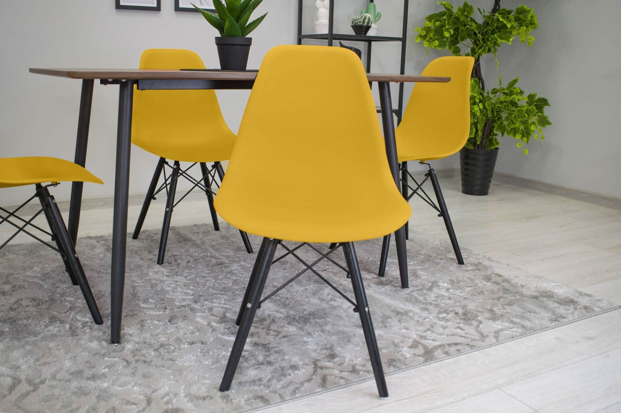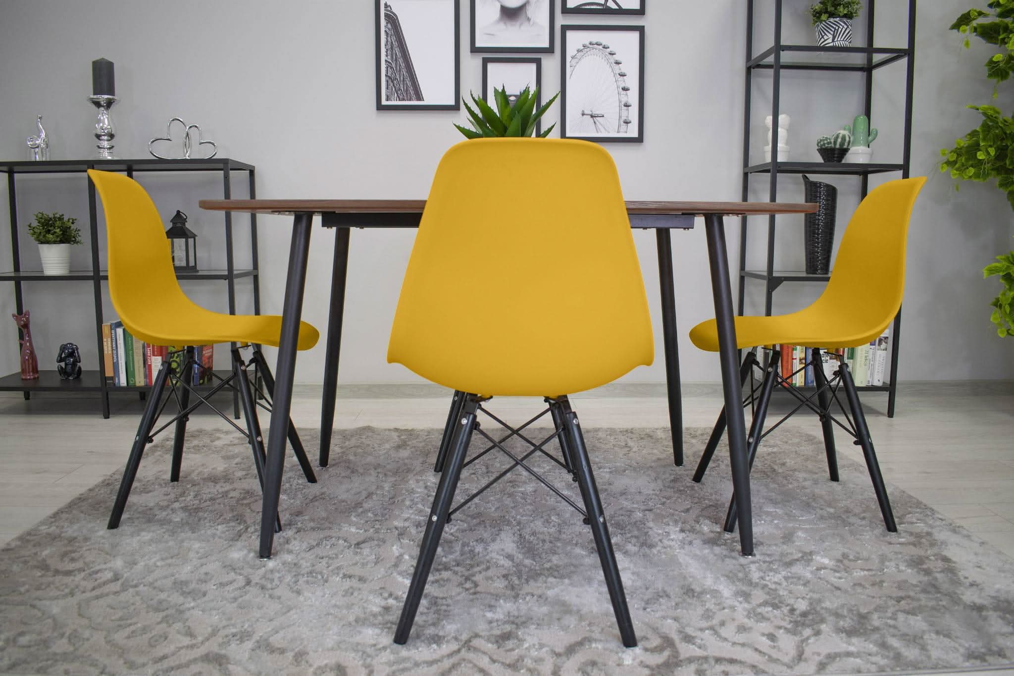 Kėdės OSAKA, garstyčių spalvos/juodos kojos, 3 vnt.