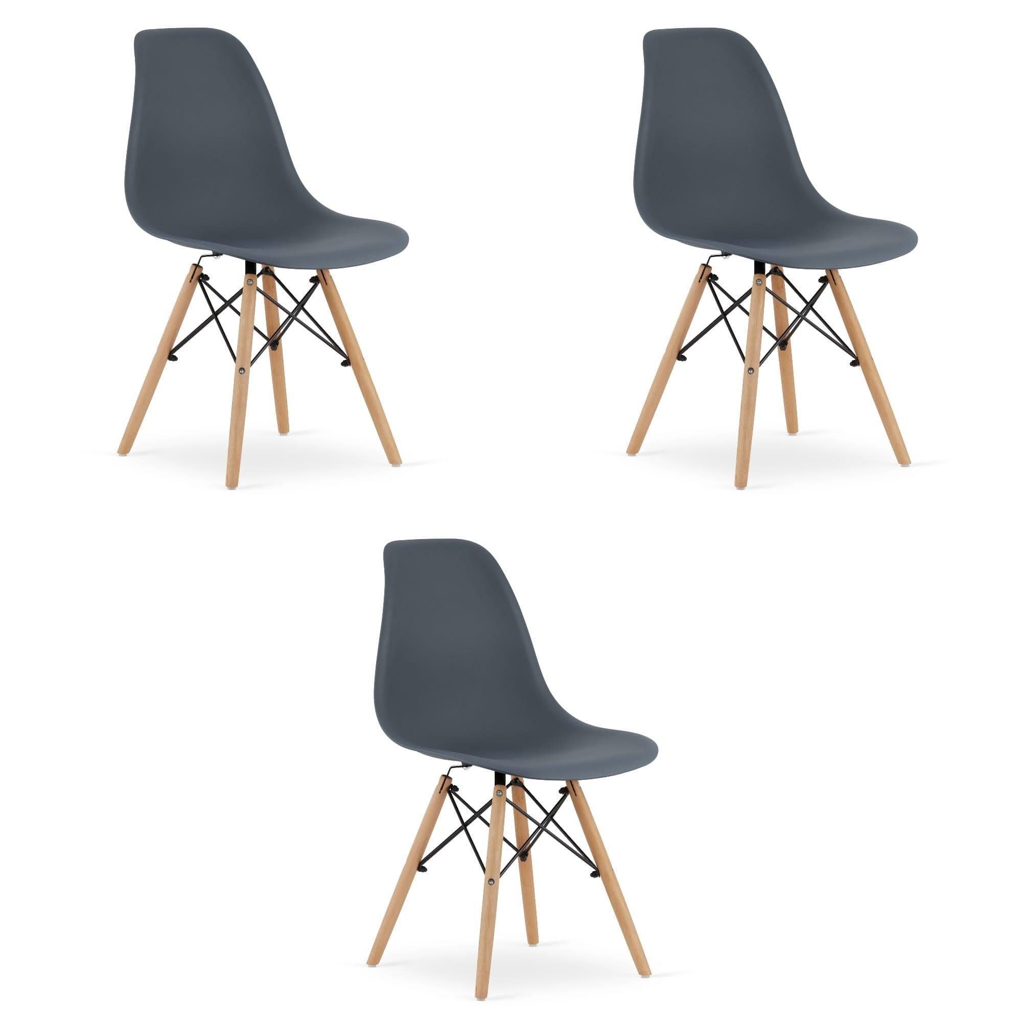 Kėdės OSAKA, grafito spalvos/natūralios kojos, 3 vnt.