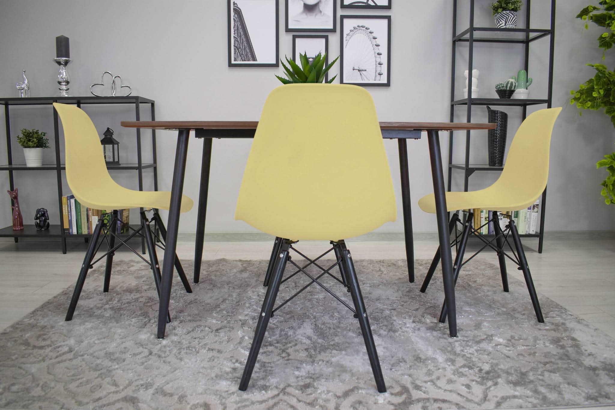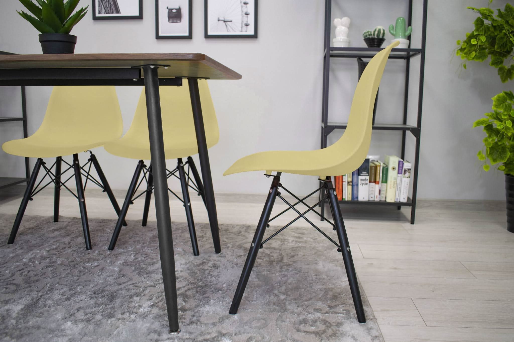 Kėdės OSAKA, kreminės/juodos kojos, 3 vnt.