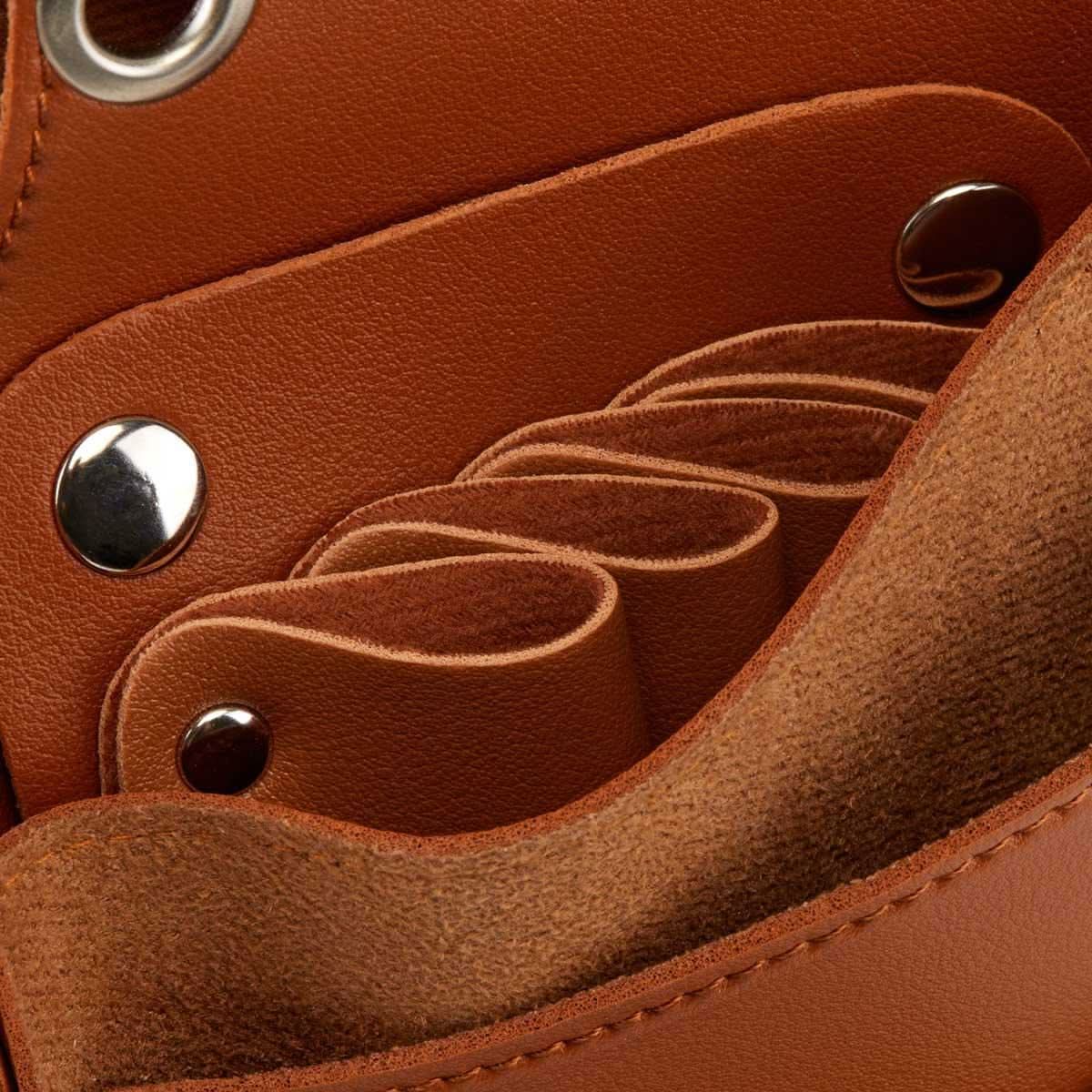 Dėklas pagamintas iš eko odos ir yra rudos spalvos. Jame yra graži sagė, kurioje yra brangakmenis. Puikiai tinka laikyti kirpimo priemones dirbant. Jo naudojimas žymiai palengvins Jūsų darbą, nes po ranka turėsite visus įrankius.
