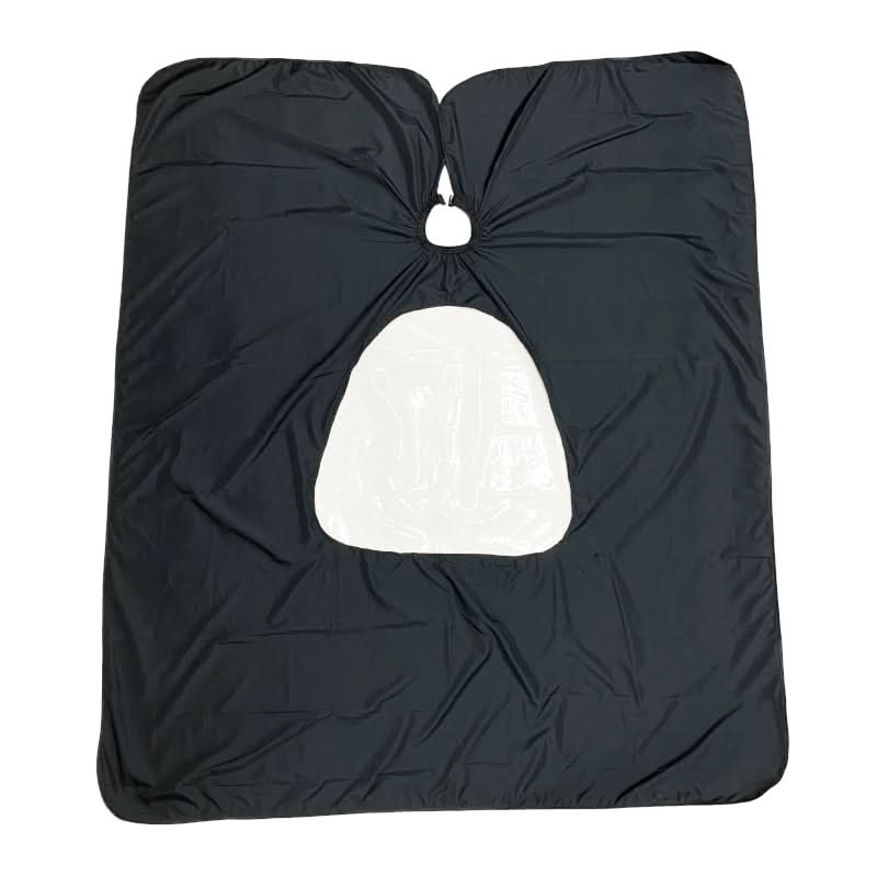 Šis klientų apsiaustas puikiai tinka tiek plaukų kirpimui, tiek dažymui ar kitoms procedūroms. Skaidrus langelis pagerina klientų patirtį – jie gali naudotis telefonu ar skaityti planšetėje net ir procedūros metu.